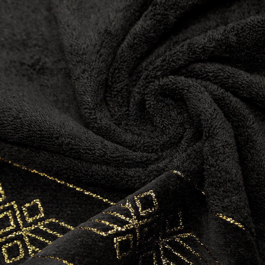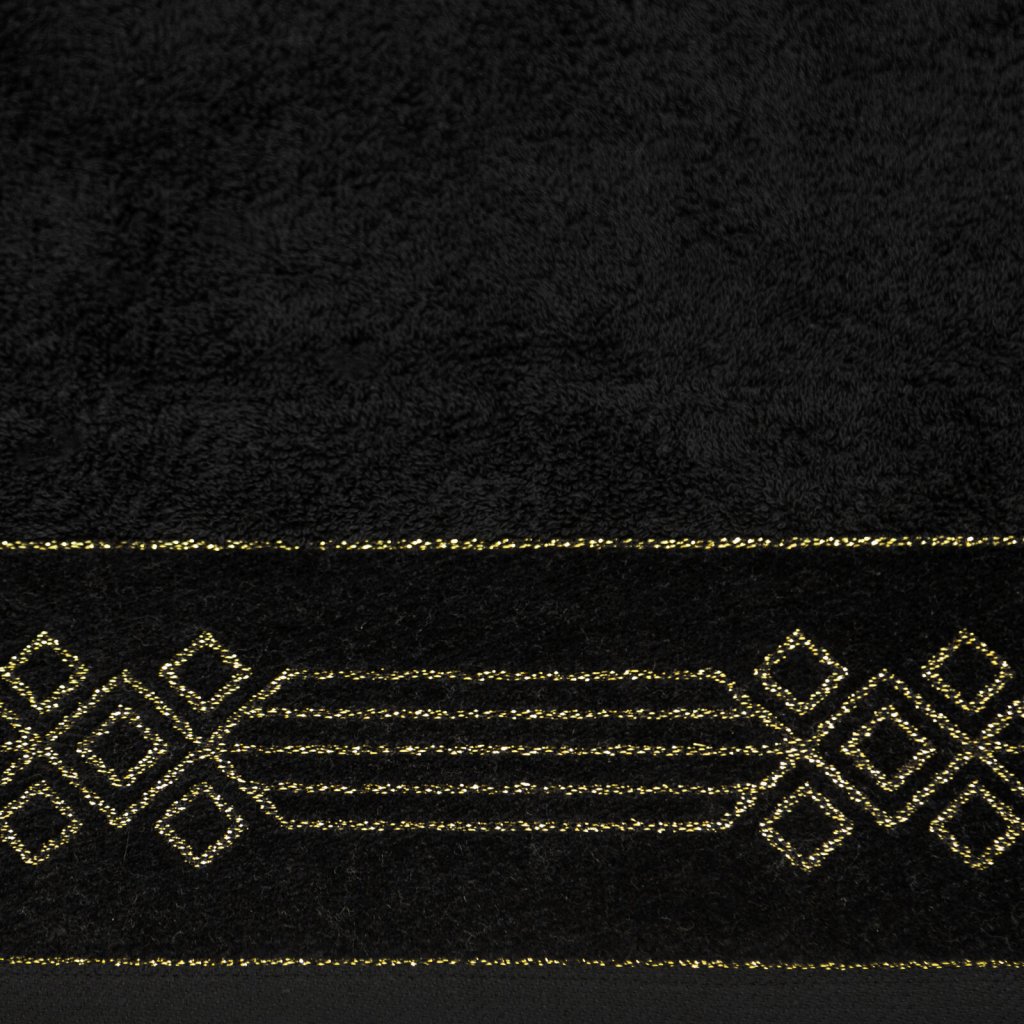 Ručník, šířka: 50 cm, délka: 90 cm, barva: černá, hmotnost: 520 GSM, složení: 100% bavlna; dekorativní část: 80% bavlna, 20% polyester.Doplňkové parametry
