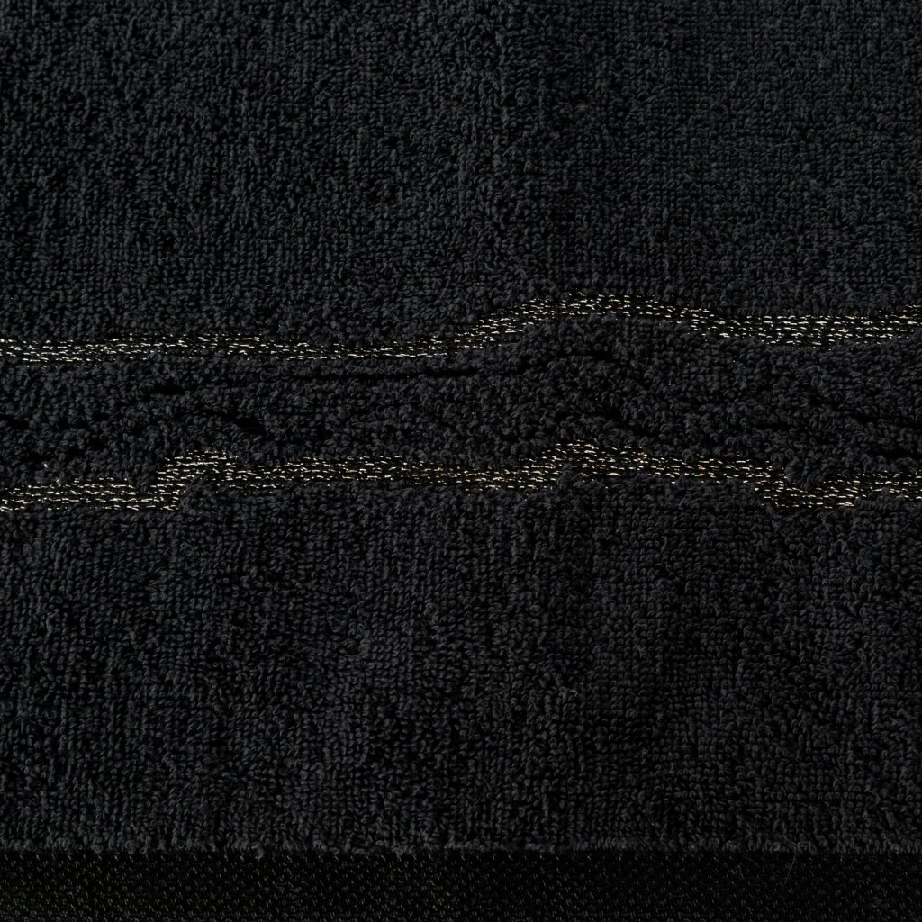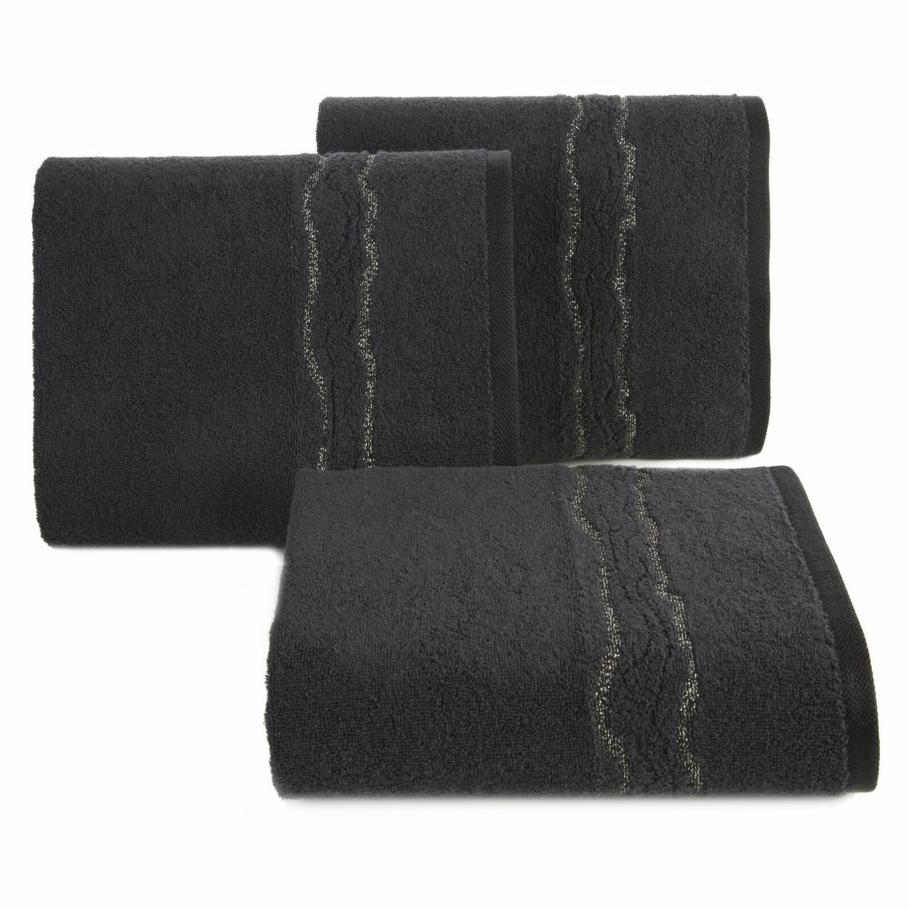 Ručník s ozdobným okrajem a lesklou nití, šířka: 30 cm, délka: 50 cm, barva: černá, hmotnost: 500 GSM, složení: 100% bavlna; ozdobná část: 50% polyester, 50% viskóza.Doplňkové parametry