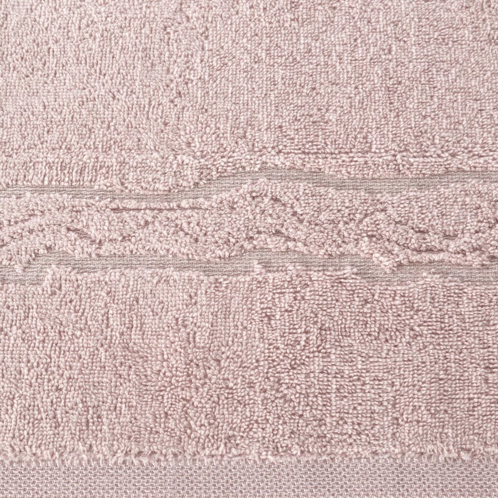 Ručník s ozdobným okrajem a lesklou nití, šířka: 50 cm, délka: 90 cm, barva: pudrová, hmotnost: 500 GSM, složení: 100% bavlna; ozdobná část: 50% polyester, 50% viskóza.Doplňkové parametry