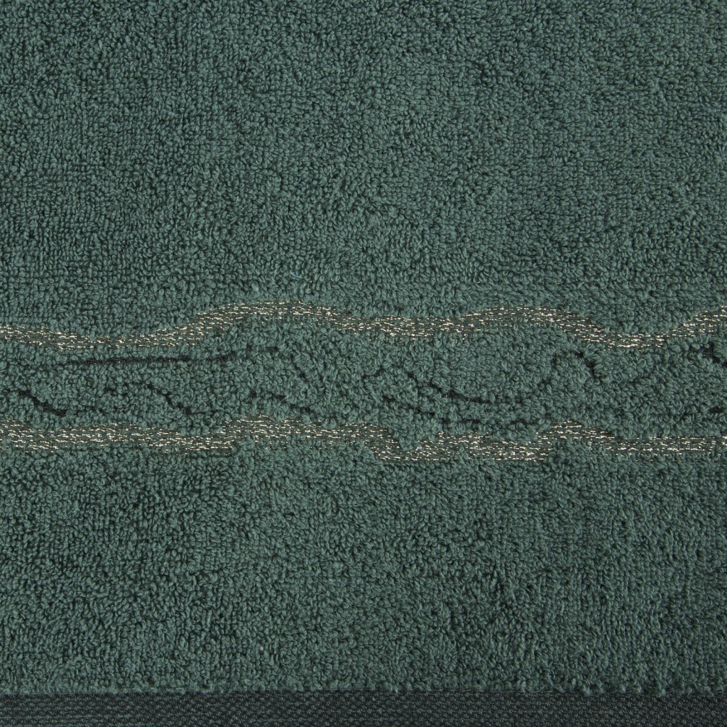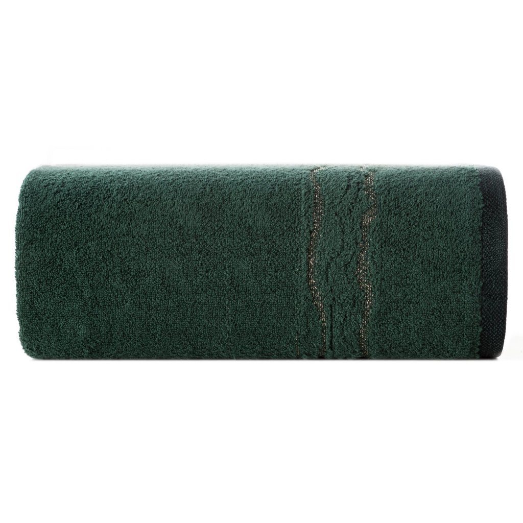 Ručník s ozdobným okrajem a lesklou nití, šířka: 70 cm, délka: 140 cm, barva: tmavě zelená, hmotnost: 500 GSM, složení: 100% bavlna; ozdobná část: 50% polyester, 50% viskóza.Doplňkové parametry
