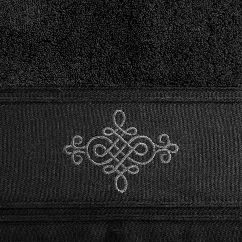 Ručník s froté bavlněnou strukturou a výjimečnou savostí. Široký okraj je zdoben klasickým ornamentem. Barvy odolné proti praní. Šířka: 50 cm, délka: 90 cm, barva: černá, hmotnost: 600 GSM, složení: 100% bavlna.Doplňkové parametry