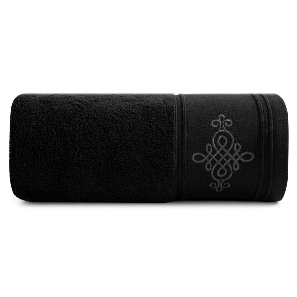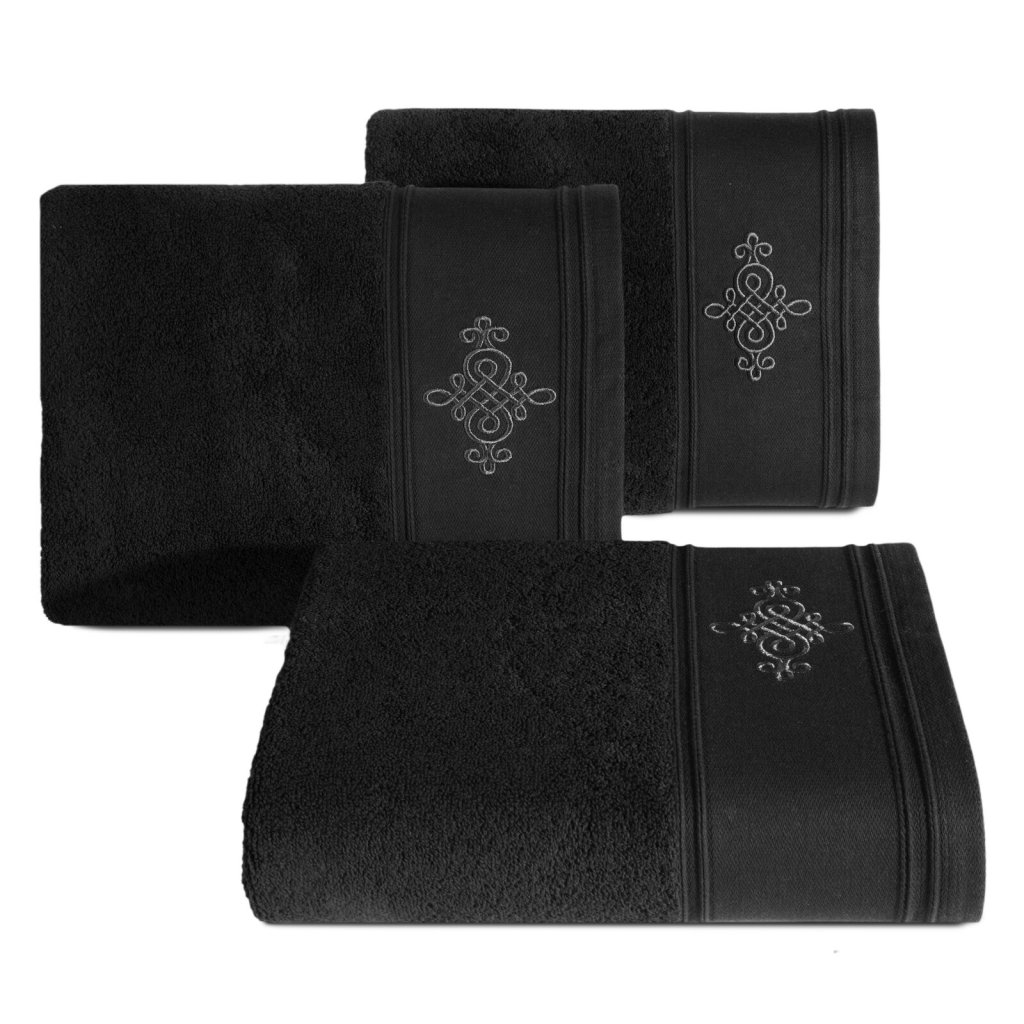 Ručník s froté bavlněnou texturou a výjimečnou savostí. Široký okraj je zdoben klasickým ornamentem. Barvy odolné proti praní. Šířka: 70 cm, délka: 140 cm, barva: černá, hmotnost: 600 GSM, složení: 100% bavlna.Doplňkové parametry