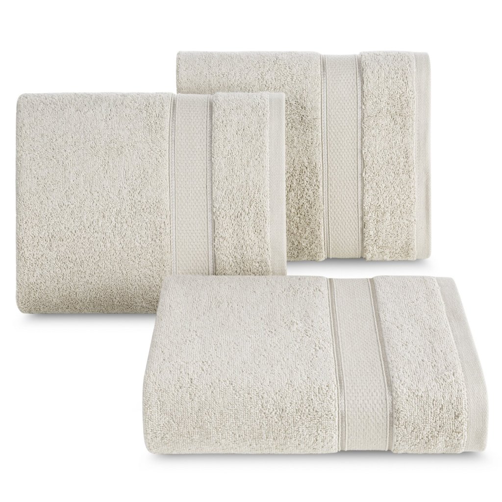 Ručník s lesklou nití, šířka: 50 cm, délka: 90 cm, barva: béžová, gramáž: 500 GSM, složení: 100% bavlna; ozdobná část: 95% bavlna, 5% polyester.Doplňkové parametry