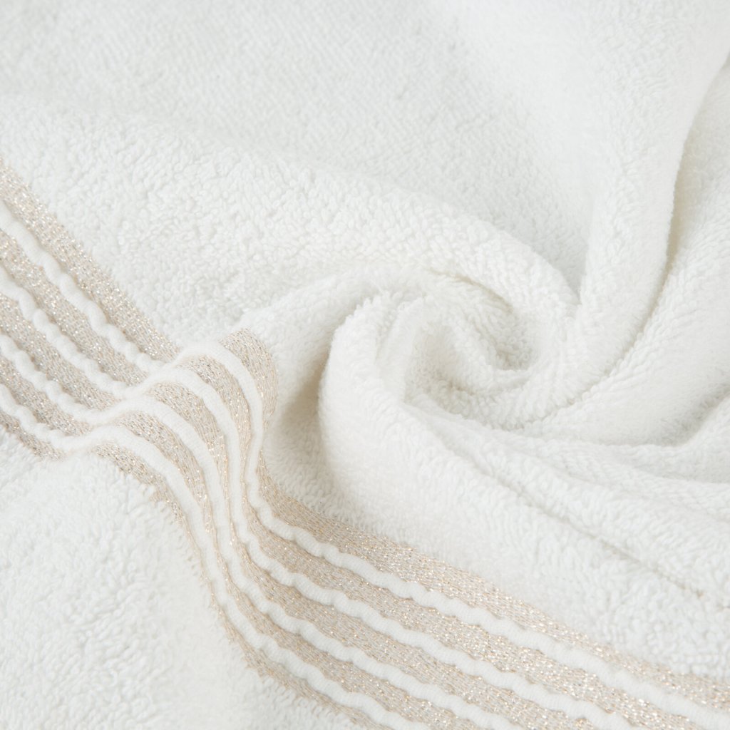 Ručník s ozdobným okrajem a lesklou nití, šířka: 30 cm, délka: 50 cm, barva: bílá, hmotnost: 500 GSM, složení: 100% bavlna; ozdobná část: 50% bavlna, 50% polyester.Doplňkové parametry