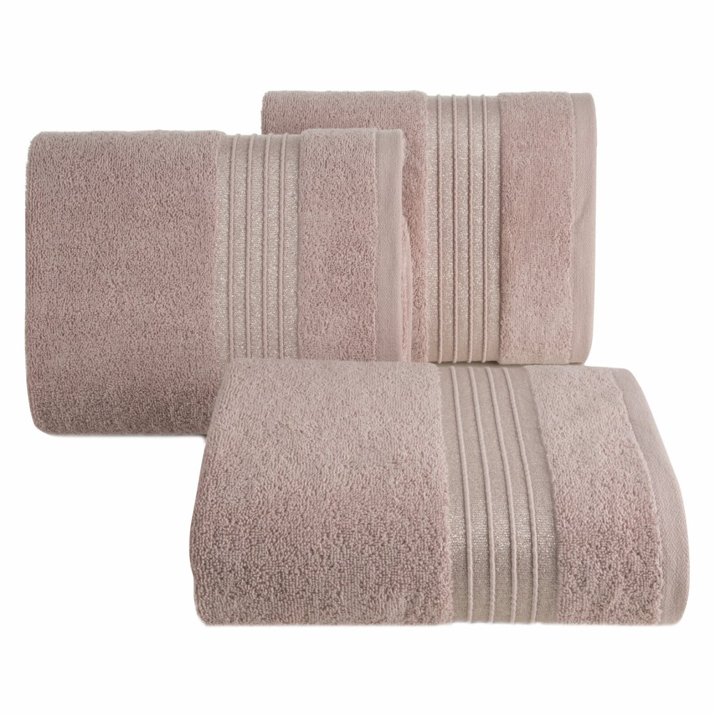 Ručník s ozdobným okrajem a lesklou nití, šířka: 30 cm, délka: 50 cm, barva: pudrová, hmotnost: 500 GSM, složení: 100% bavlna; ozdobná část: 50% bavlna, 50% polyester.Doplňkové parametry