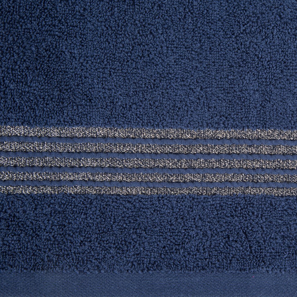 Ručník s ozdobným okrajem a lesklou nití, šířka: 30 cm, délka: 50 cm, barva: tmavě modrá, hmotnost: 500 GSM, složení: 100% bavlna; ozdobná část: 50% bavlna, 50% polyester.Doplňkové parametry