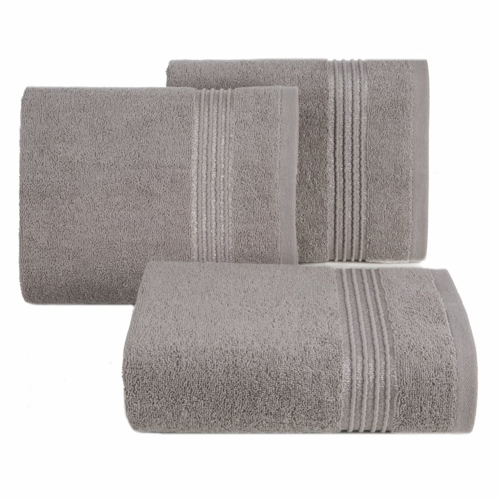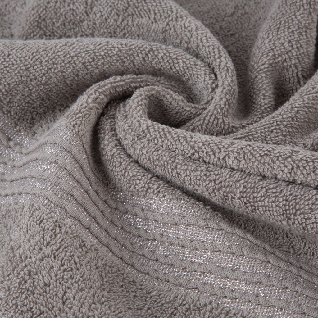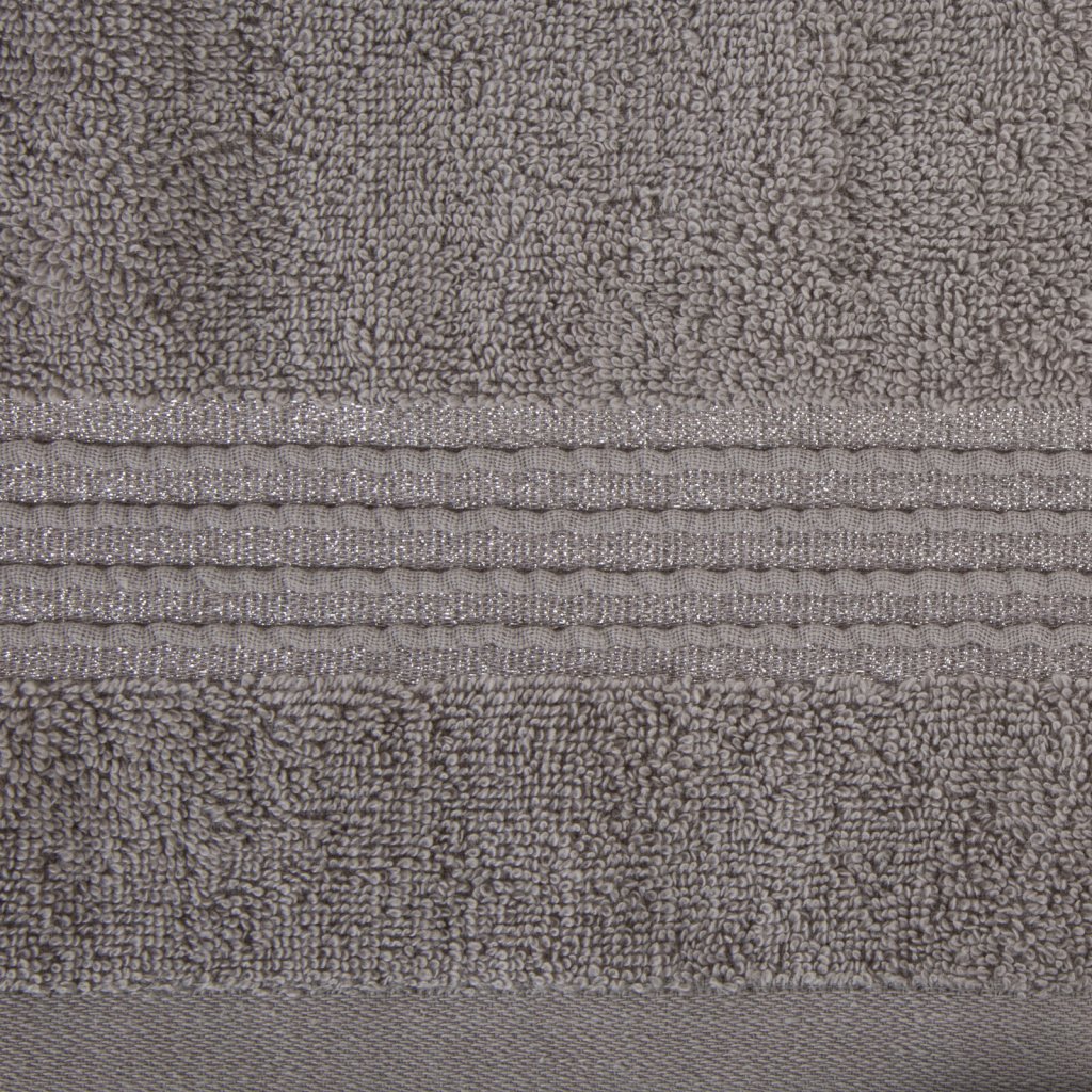 Ručník s ozdobným okrajem a lesklou nití, šířka: 50 cm, délka: 90 cm, barva: šedá, hmotnost: 500 GSM, složení: 100% bavlna; ozdobná část: 50% bavlna, 50% polyester.Doplňkové parametry
