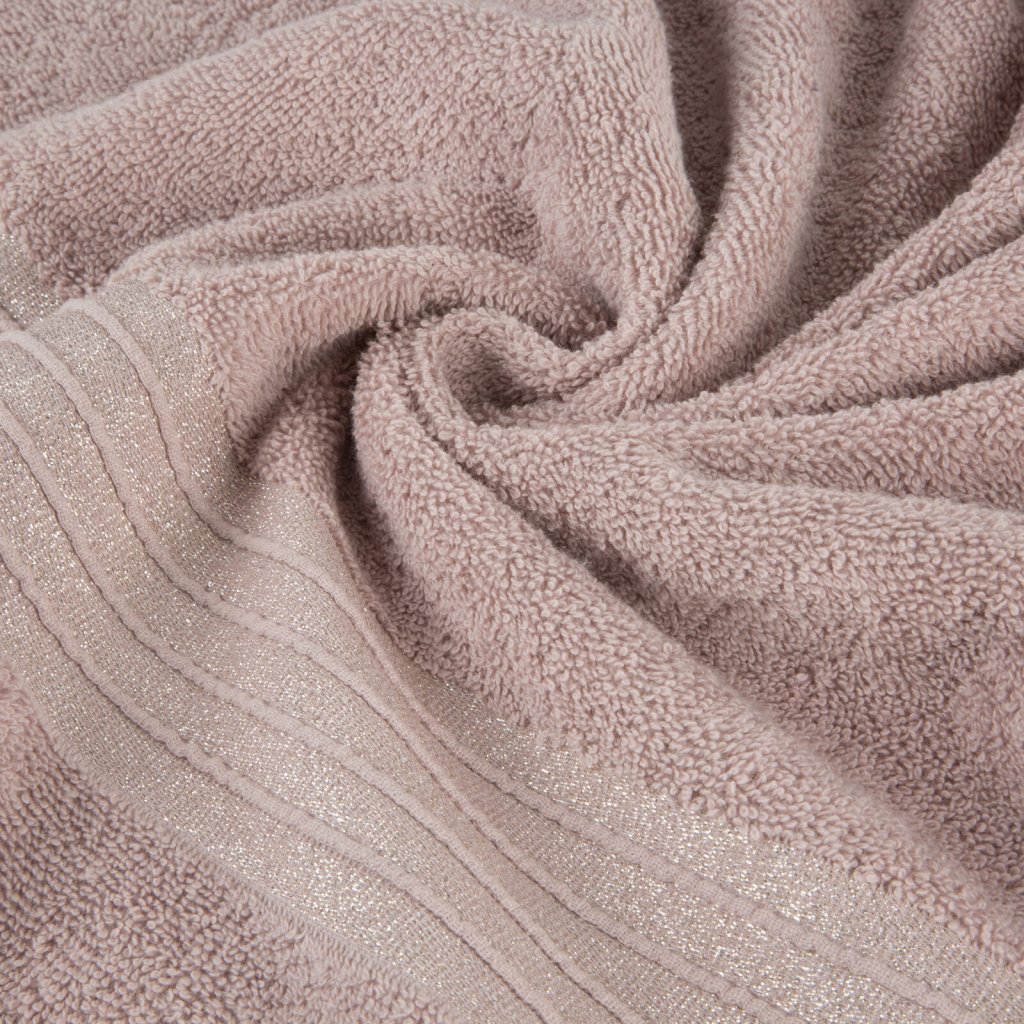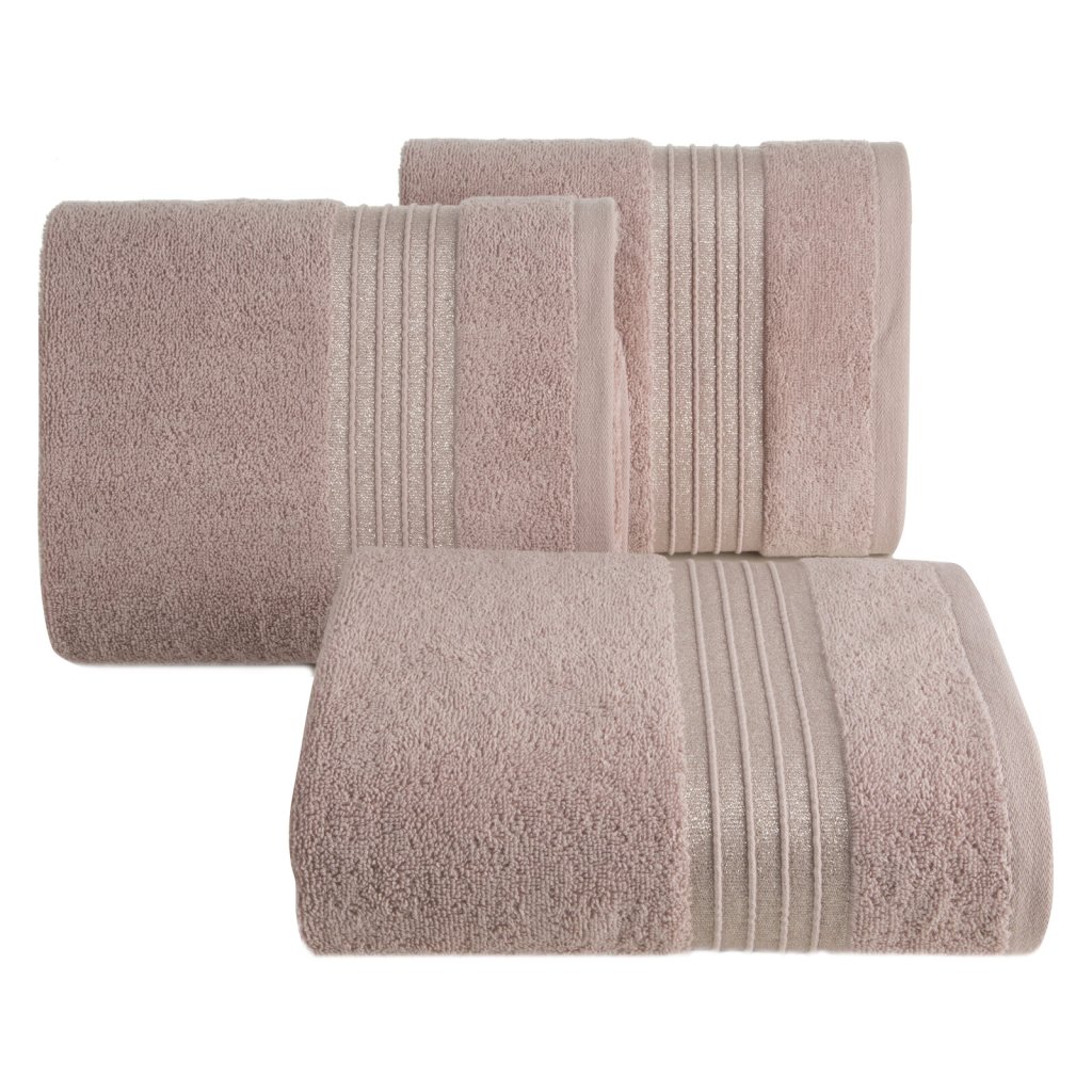 Ručník s ozdobným okrajem a lesklou nití, šířka: 70 cm, délka: 140 cm, barva: pudrová, hmotnost: 500 GSM, složení: 100% bavlna; ozdobná část: 50% bavlna, 50% polyester.Doplňkové parametry