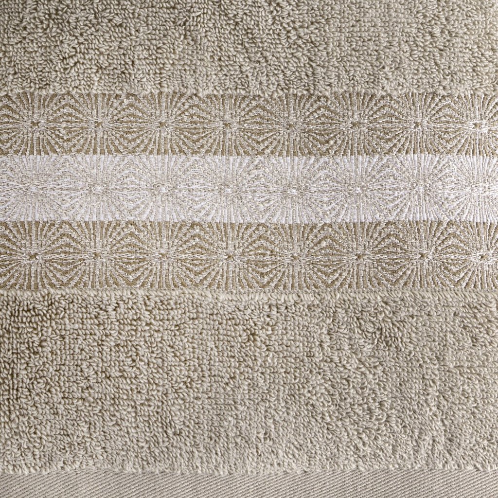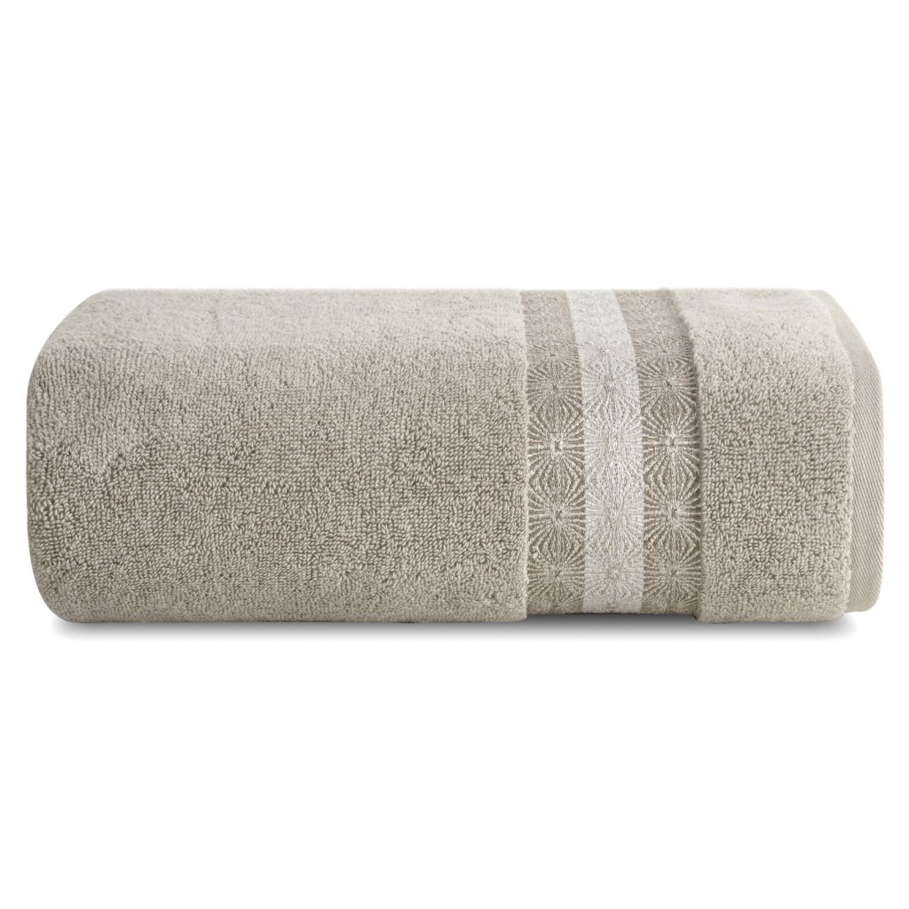 Ručník, šířka: 50 cm, délka: 90 cm, barva: béžová, gramáž: 500 GSM, složení: 100% bavlna; dekorativní část: 61% bavlna, 20% polyester, 19% kovová nit.Doplňkové parametry