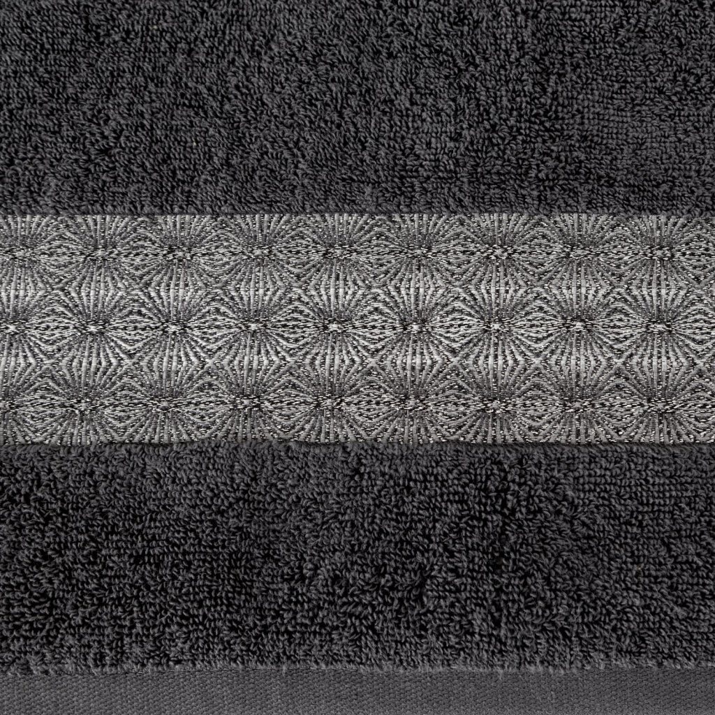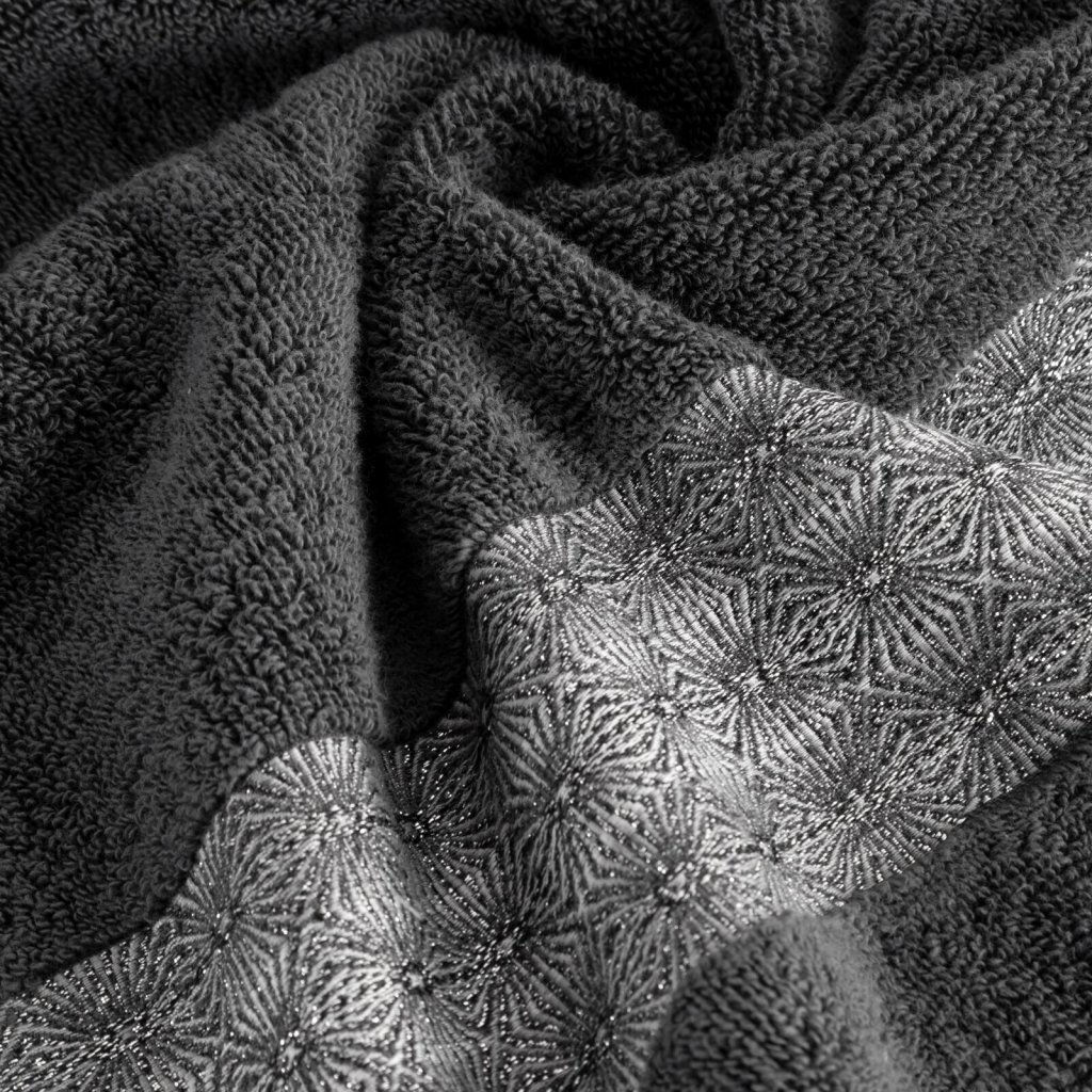 Ručník, šířka: 70 cm, délka: 140 cm, barva: šedá, gramáž: 500 GSM, složení: 100% bavlna; dekorační část: 61% bavlna, 20% polyester, 19% kovová nit.Doplňkové parametry