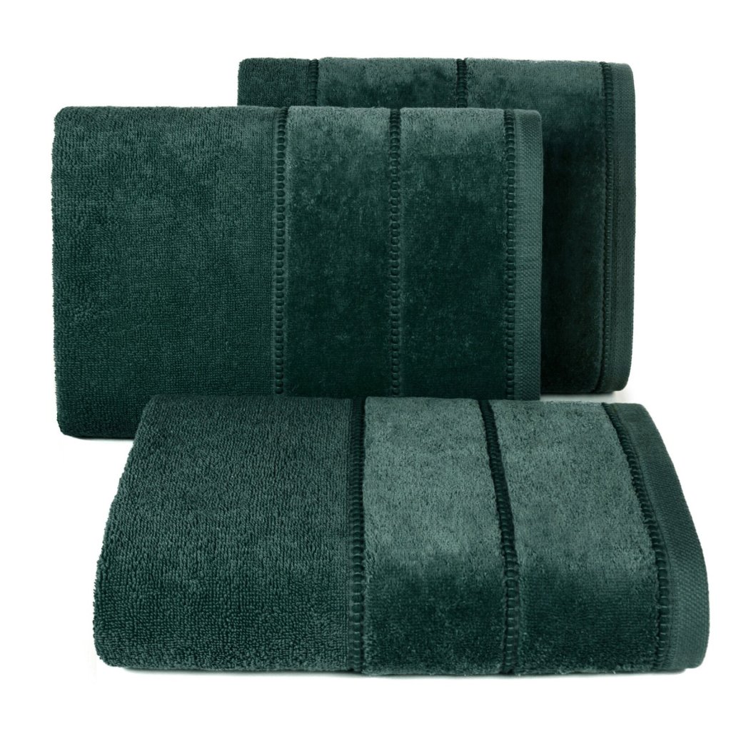 Ručník s ozdobnými velurovými pruhy. Šířka: 70 cm, délka: 140 cm, barva: zelená, hmotnost: 500 GSM, složení: 100% bavlna.Doplňkové parametry