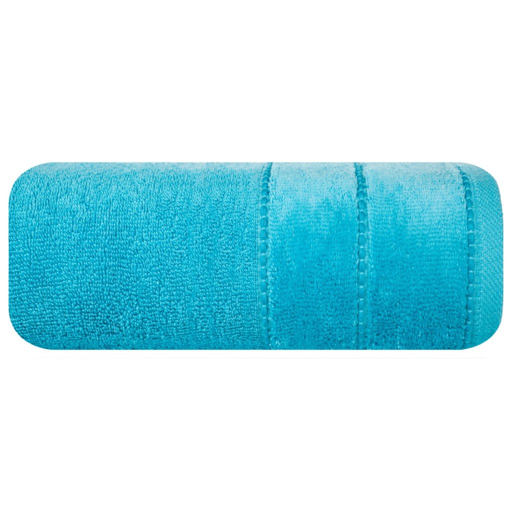 Ručník s ozdobnými velurovými pruhy. Šířka: 30 cm, délka: 50 cm, barva: tyrkysová, hmotnost: 500 GSM, složení: 100% bavlna.Doplňkové parametry
