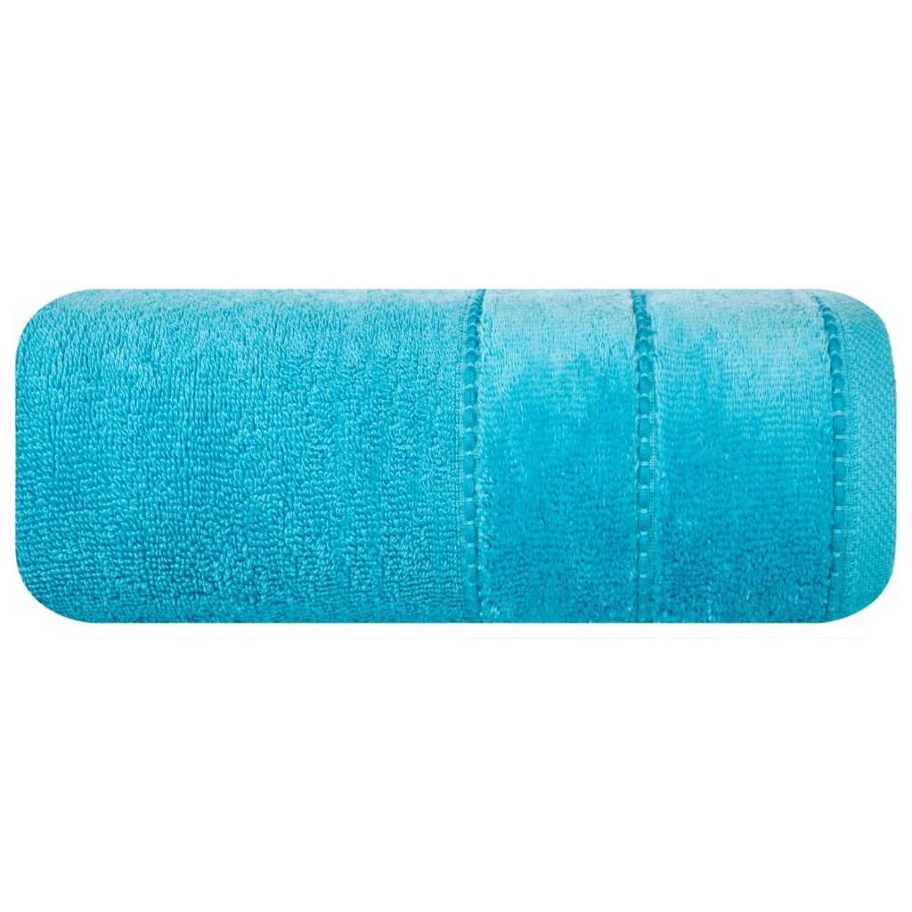 Ručník s ozdobnými velurovými pruhy. Šířka: 70 cm, délka: 140 cm, barva: tyrkysová, gramáž: 500 GSM, složení: 100 % bavlna.Doplňkové parametry