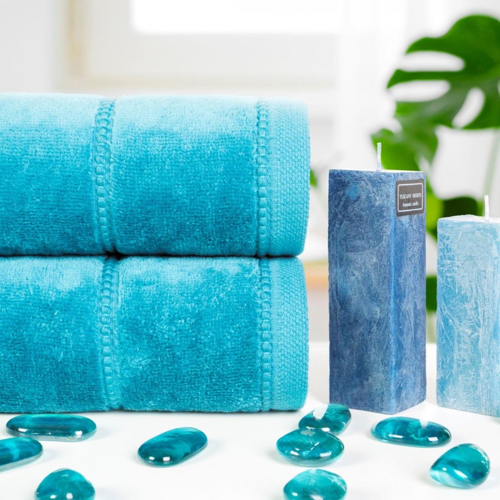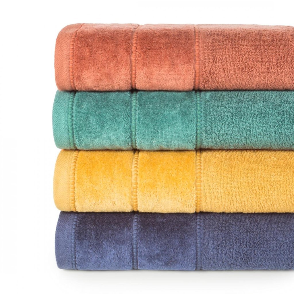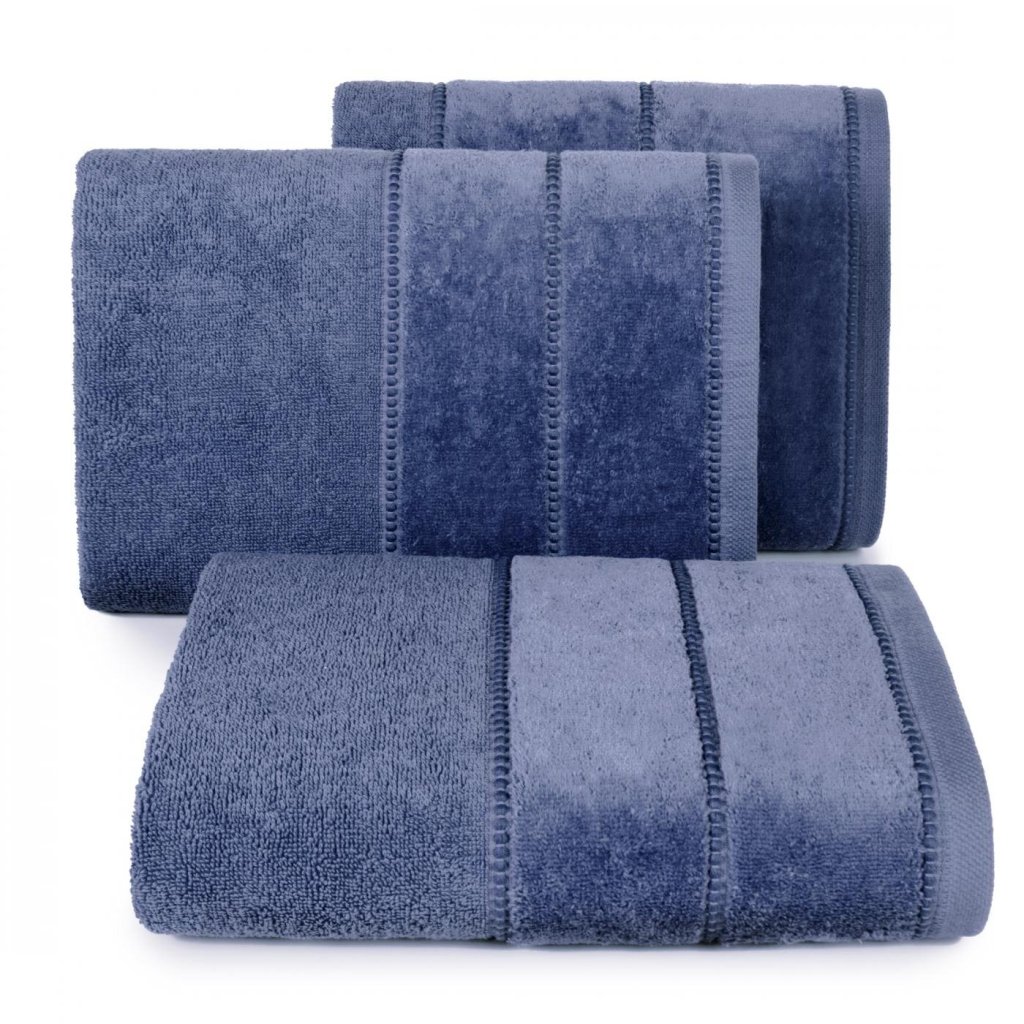 Ručník s ozdobnými velurovými pruhy šířka: 70 cm, délka: 140 cm, barva: tmavě modrá, hmotnost: 500 GSM, složení: 100% bavlna.Doplňkové parametry