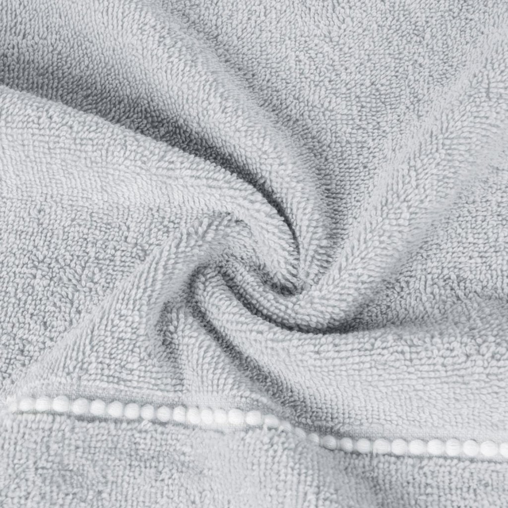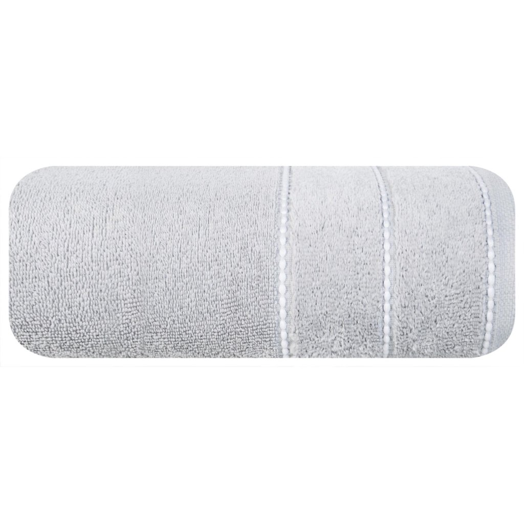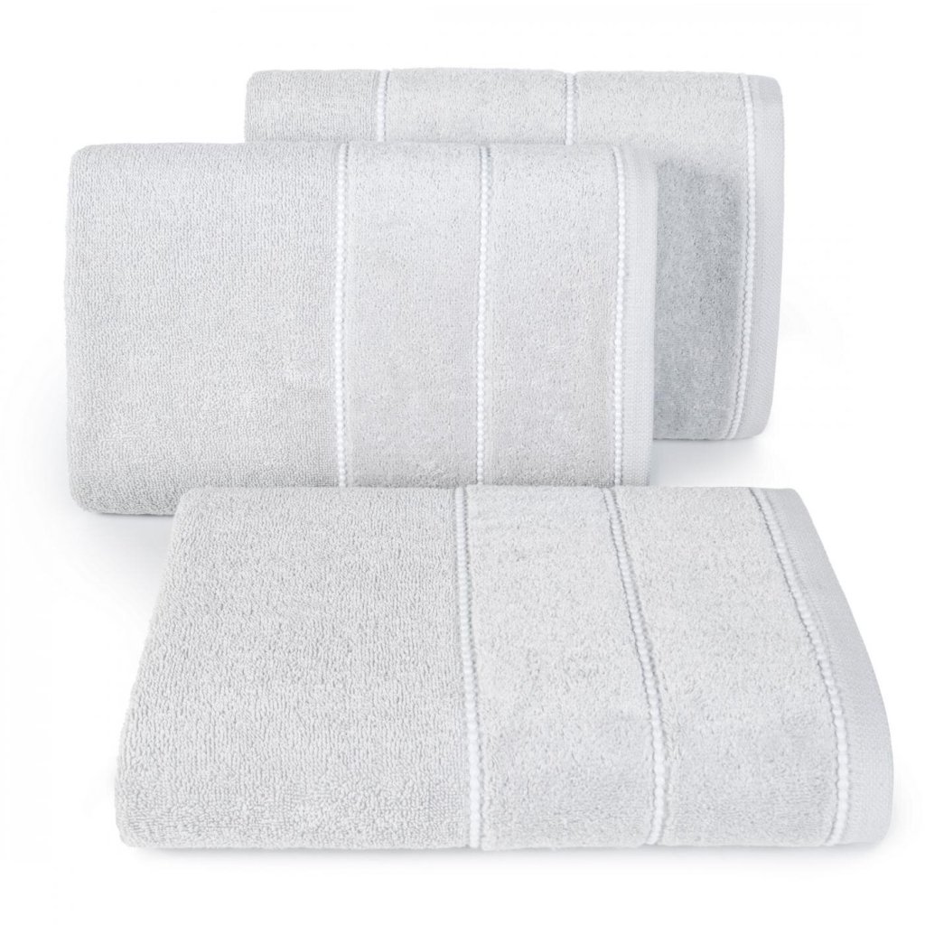 Ručník s ozdobnými velurovými pruhy. Šířka: 70 cm, délka: 140 cm, barva: stříbrná, hmotnost: 500 GSM, složení: 100% bavlna.Doplňkové parametry