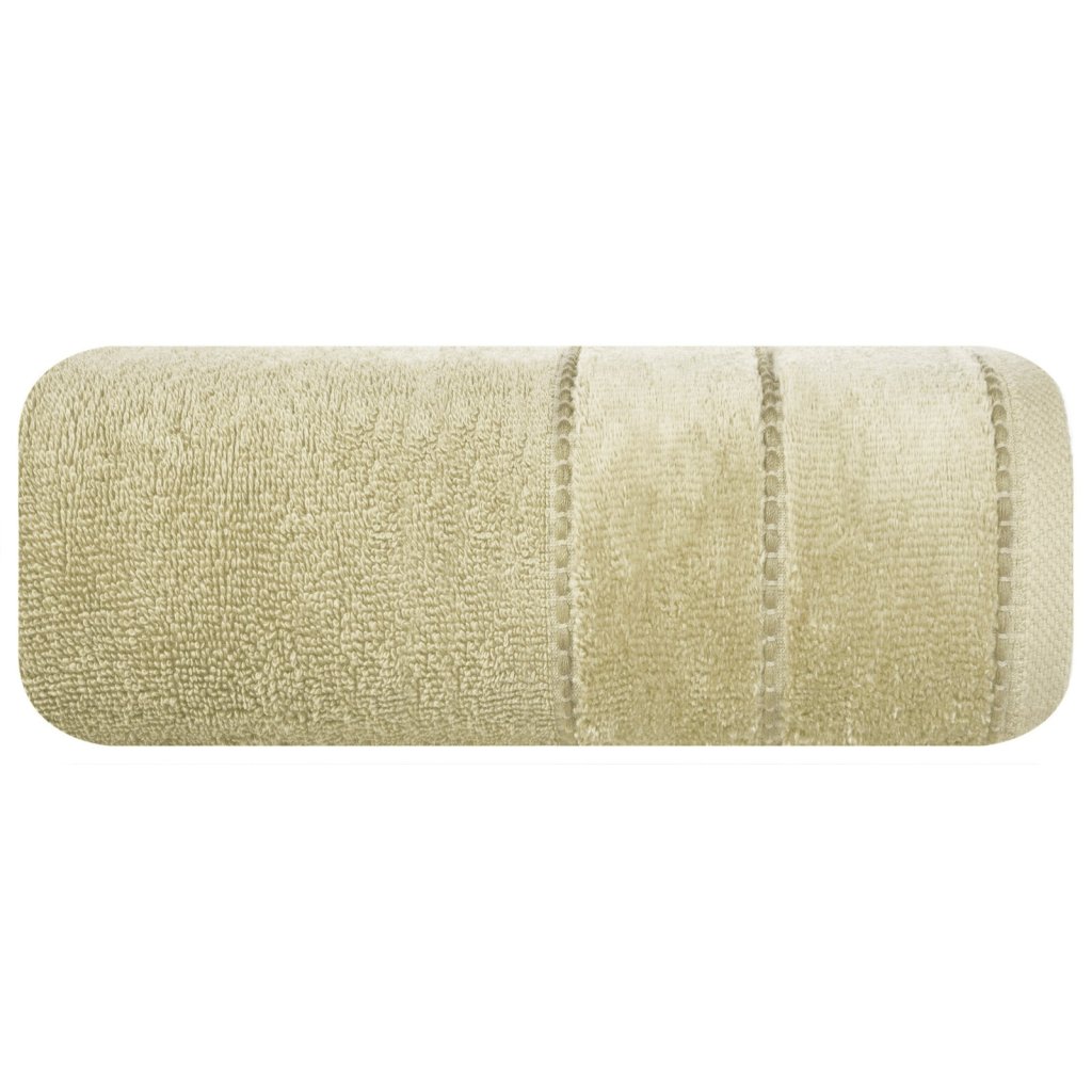 Ručník s ozdobnými velurovými pruhy na lemu. Šířka: 50 cm, délka: 90 cm, barva: béžová, gramáž: 500 GSM, složení: 100% bavlna.Doplňkové parametry