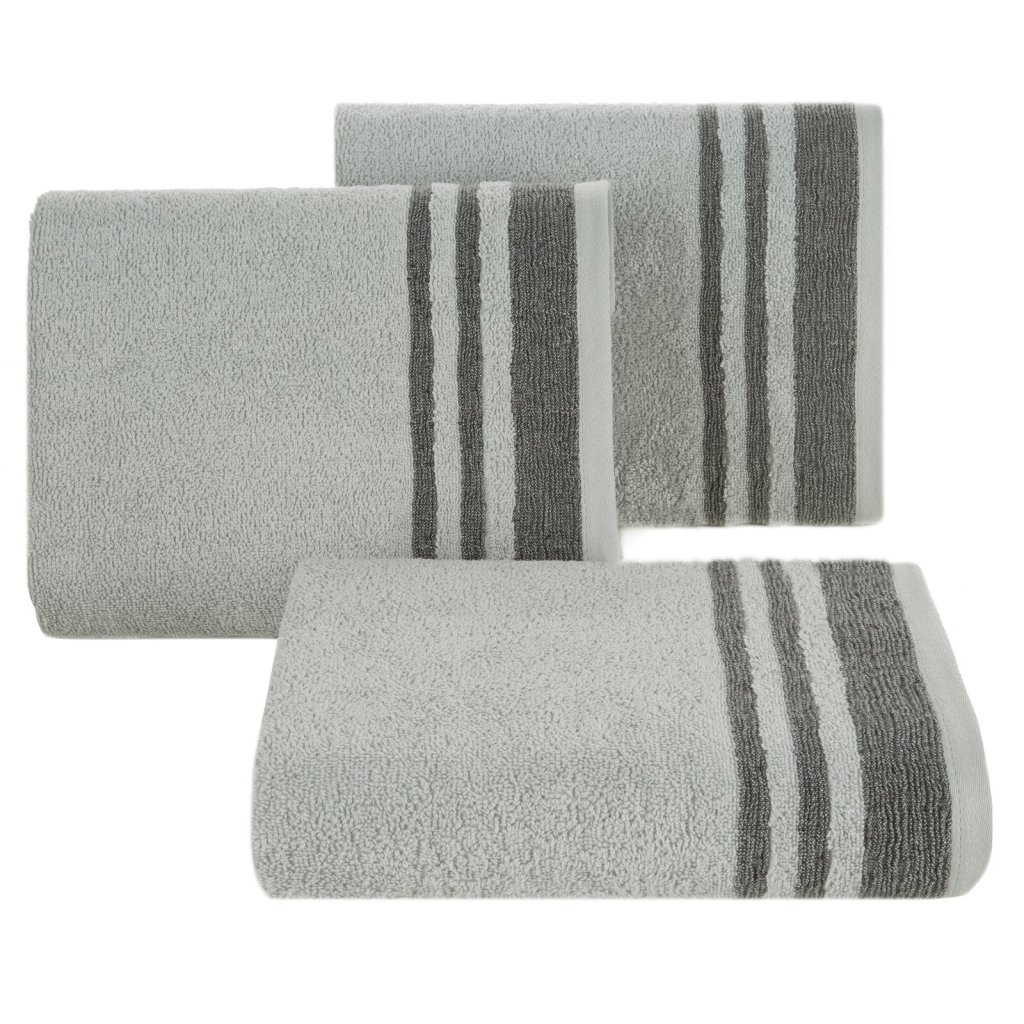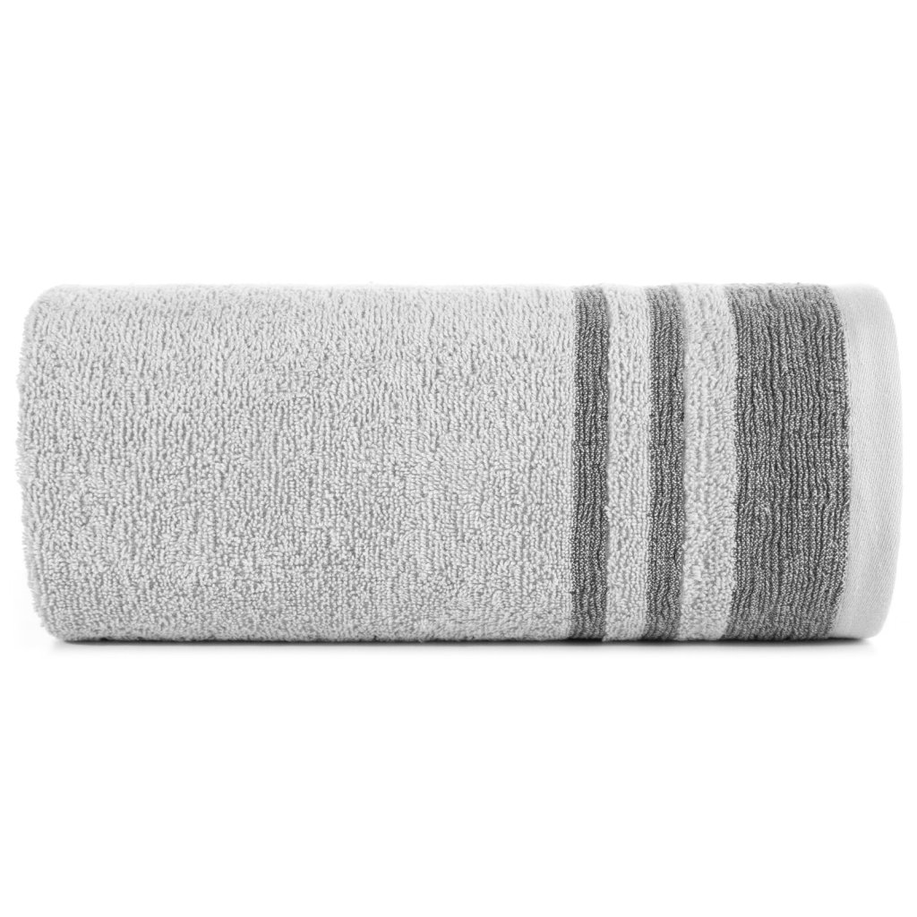 Ručník s ozdobným lemem, šířka: 50 cm, délka: 90 cm, barva: stříbrná, hmotnost: 500 GSM, složení: 100% bavlna; ozdobná část: 95% bavlna, 5% polyester.Doplňkové parametry