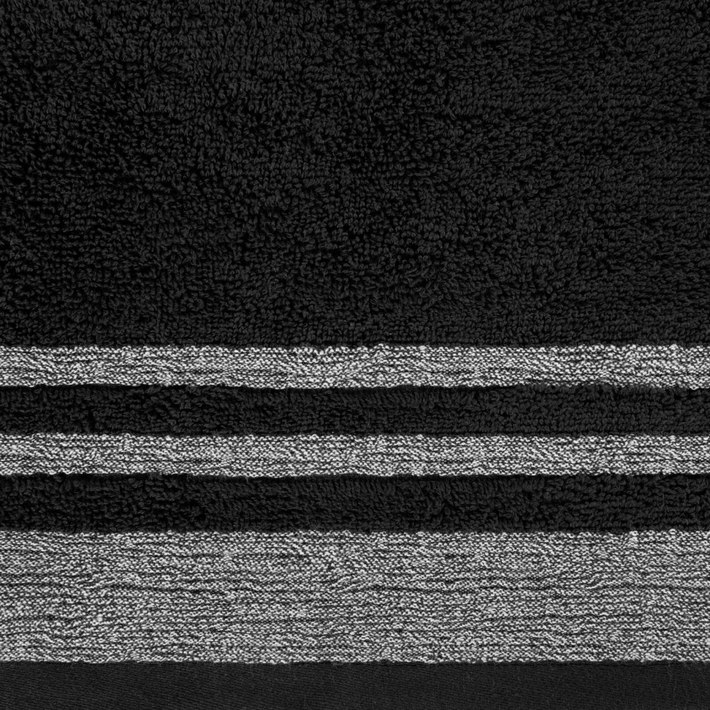 Ručník s ozdobným lemem, šířka: 30 cm, délka: 50 cm, barva: černá, hmotnost: 500 GSM, složení: 100% bavlna; ozdobná část: 95% bavlna, 5% polyester.Doplňkové parametry