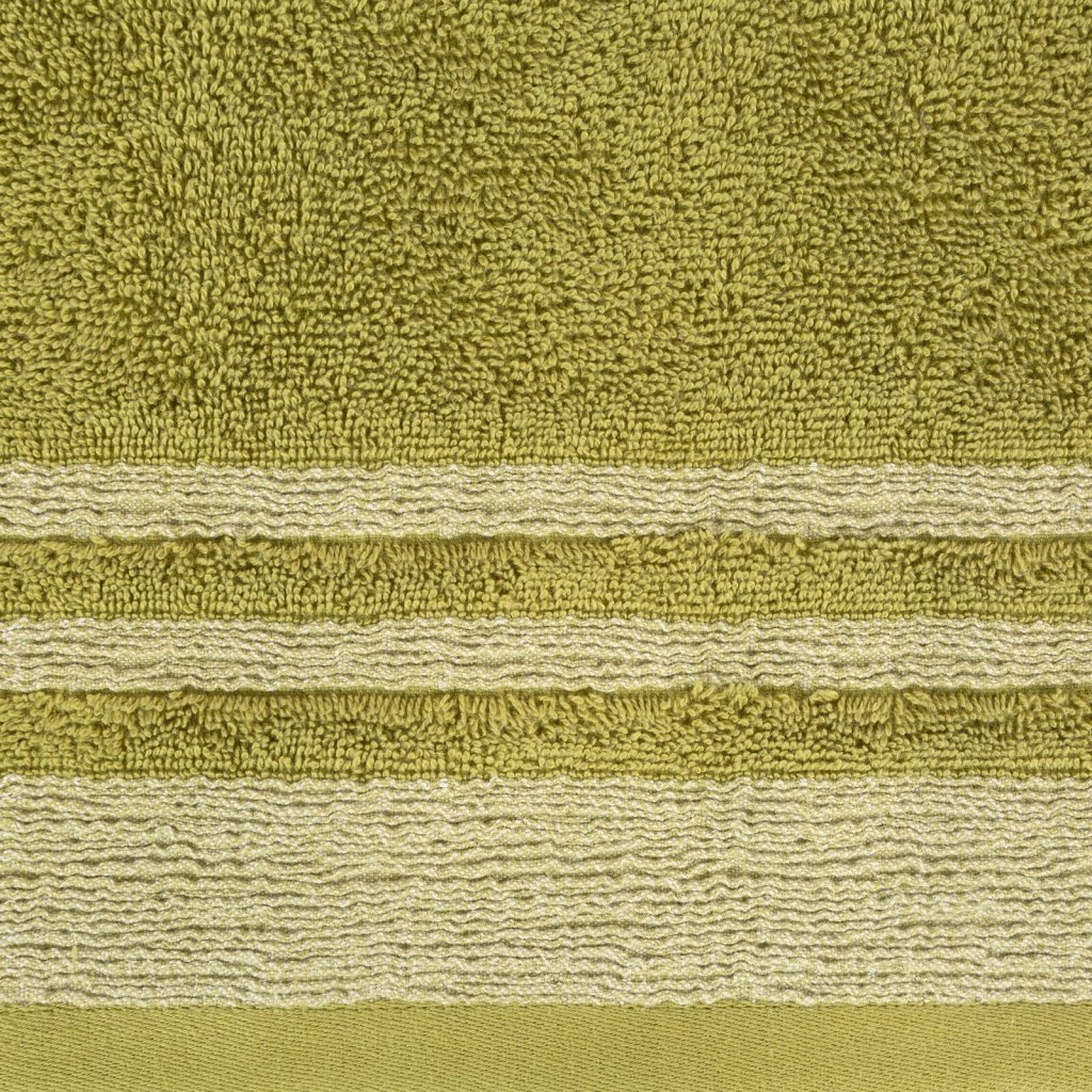 Ručník s ozdobným lemem, šířka: 30 cm, délka: 50 cm, barva: olivová, hmotnost: 500 GSM, složení: 100% bavlna; ozdobná část: 95% bavlna, 5% polyester.Doplňkové parametry