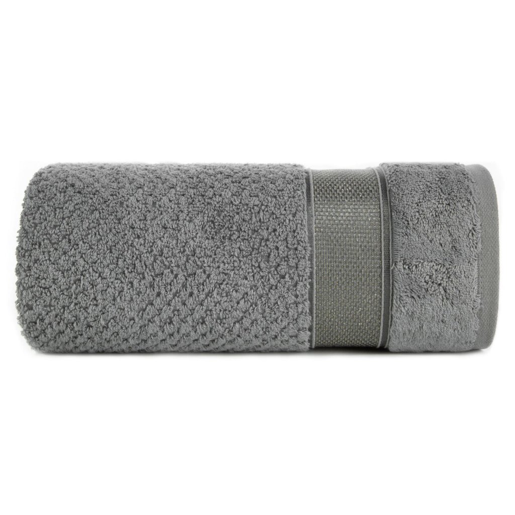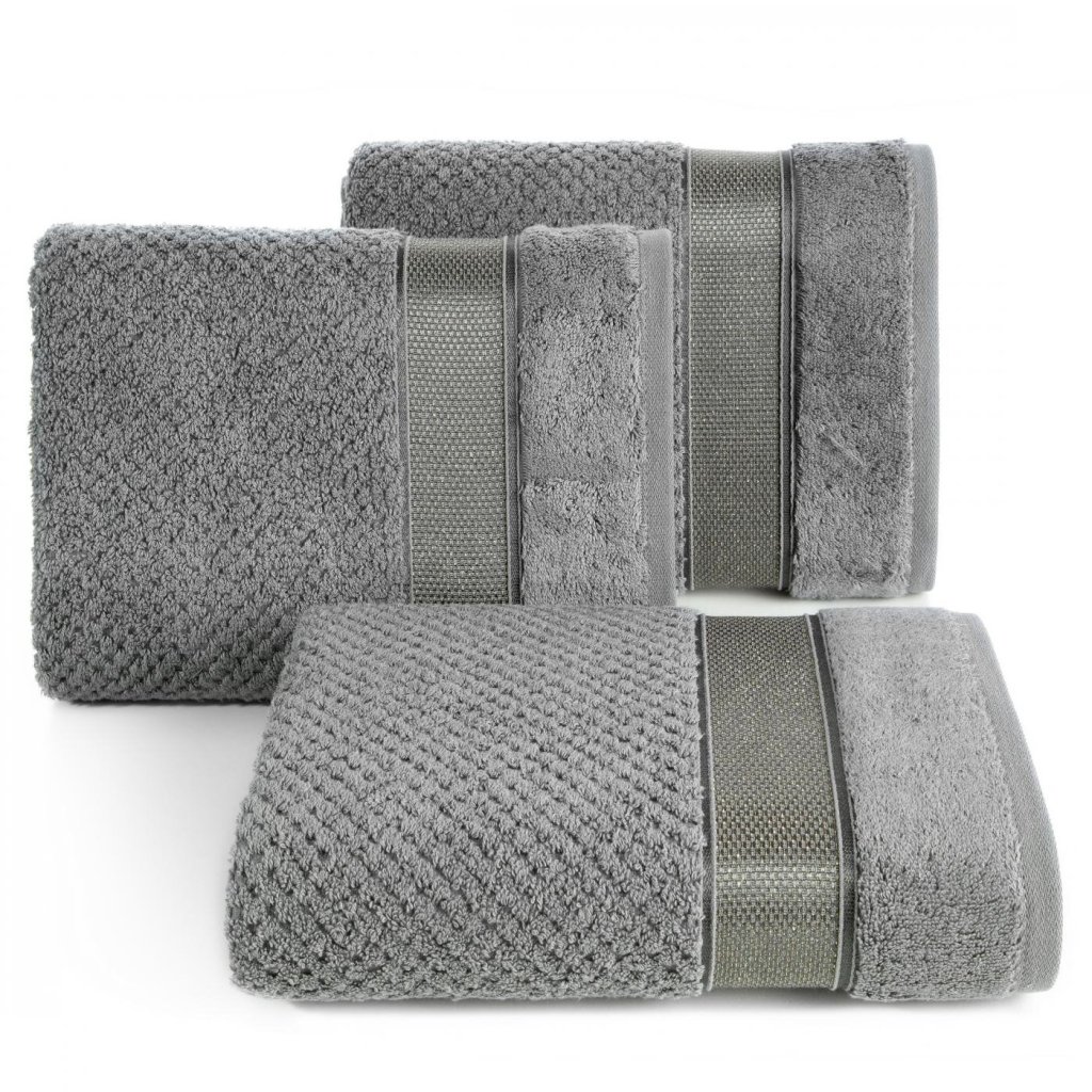 Měkký, vysoce savý ručník s ozdobnými okraji. Šířka: 30 cm, délka: 50 CM cm, barva: šedá, gramáž: 500 GSM, složení: 100 % bavlna.Doplňkové parametry