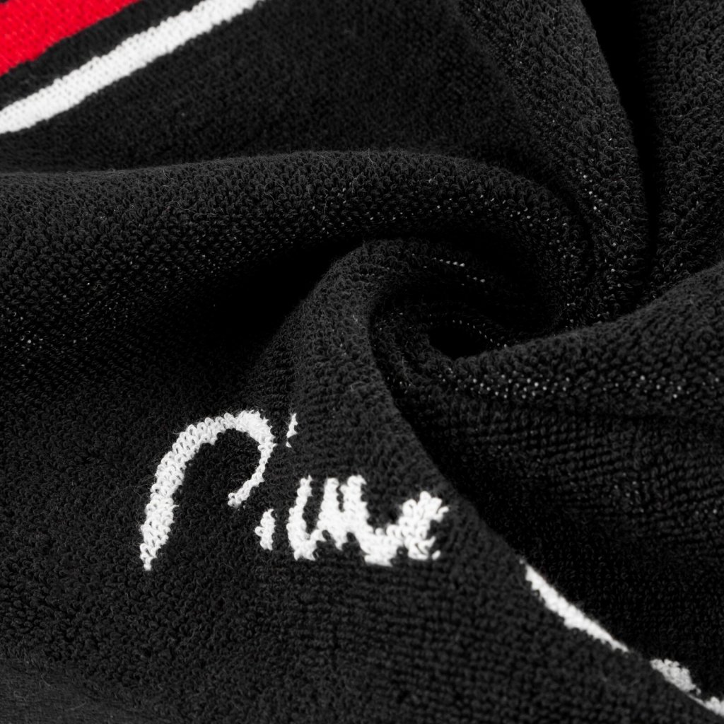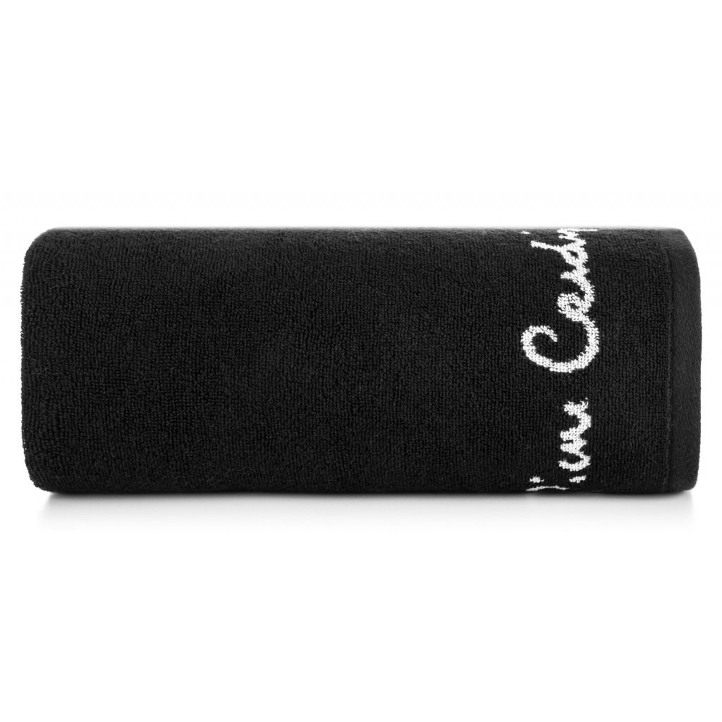 Bavlněný ručník z kolekce Pierre Cardin, šířka: 50 cm, délka: 90 cm, barva: černá, hmotnost: 450 GSM, složení: 100% bavlna; ozdobná část: 64% bavlna, 36% polyester.Doplňkové parametry