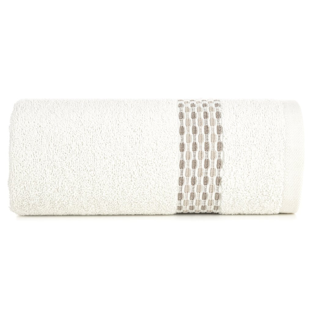 Ručník s ozdobným žakárovým lemem, šířka: 50 cm, délka: 90 cm, barva: krémová, hmotnost: 500 GSM, složení: 100% bavlna.Doplňkové parametry