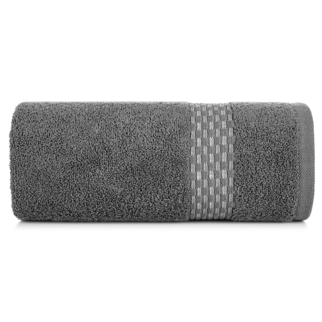 Ručník s ozdobným žakárovým lemem, šířka: 30 cm, délka: 50 cm, barva: šedá, hmotnost: 500 GSM, složení: 100% bavlna.Doplňkové parametry