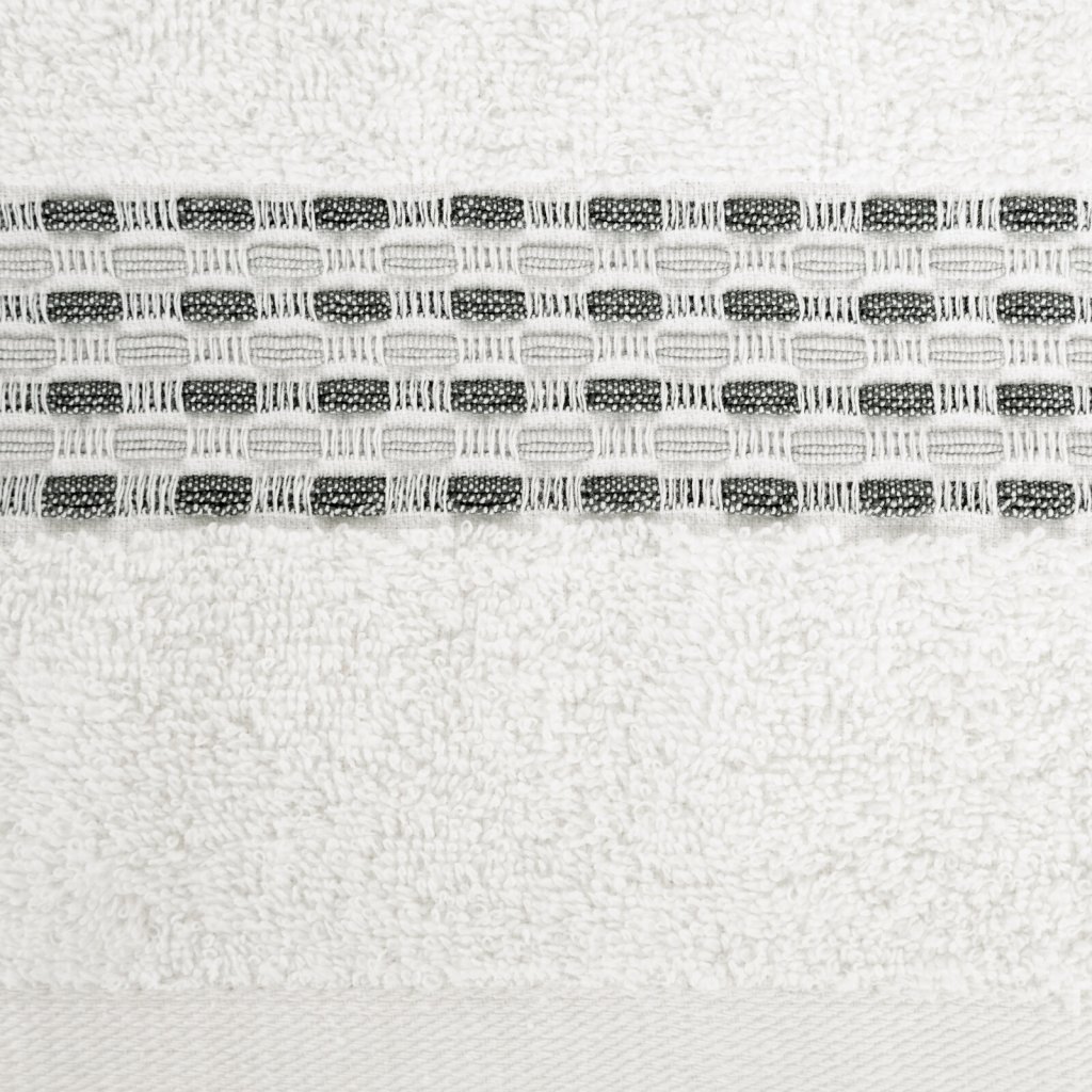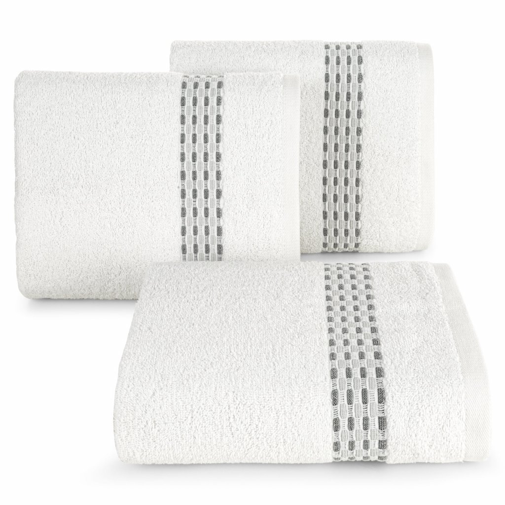 Ručník s ozdobným žakárovým lemem, šířka: 70 cm, délka: 140 cm, barva: bílá, hmotnost: 500 GSM, složení: 100% bavlna.Doplňkové parametry