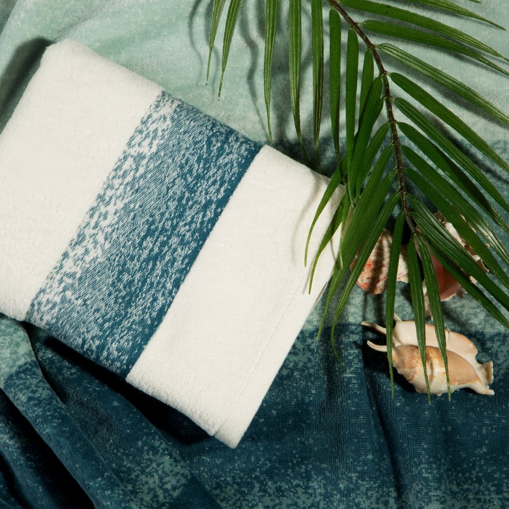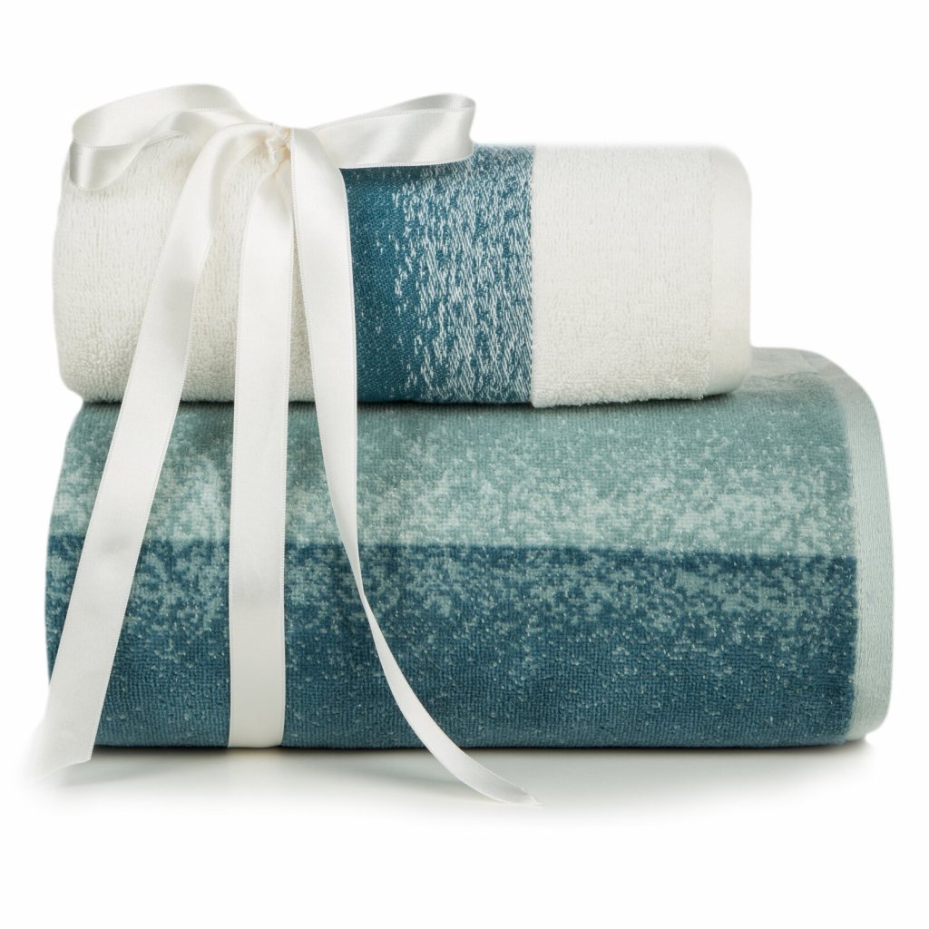 Sada pruhovaných ručníků s efektem stínování, rozměr: 1x50x90 cm, 1x70x140 cm, barva: modrá, hmotnost: 485+500 GSM, složení: 100% bavlna.Doplňkové parametry
