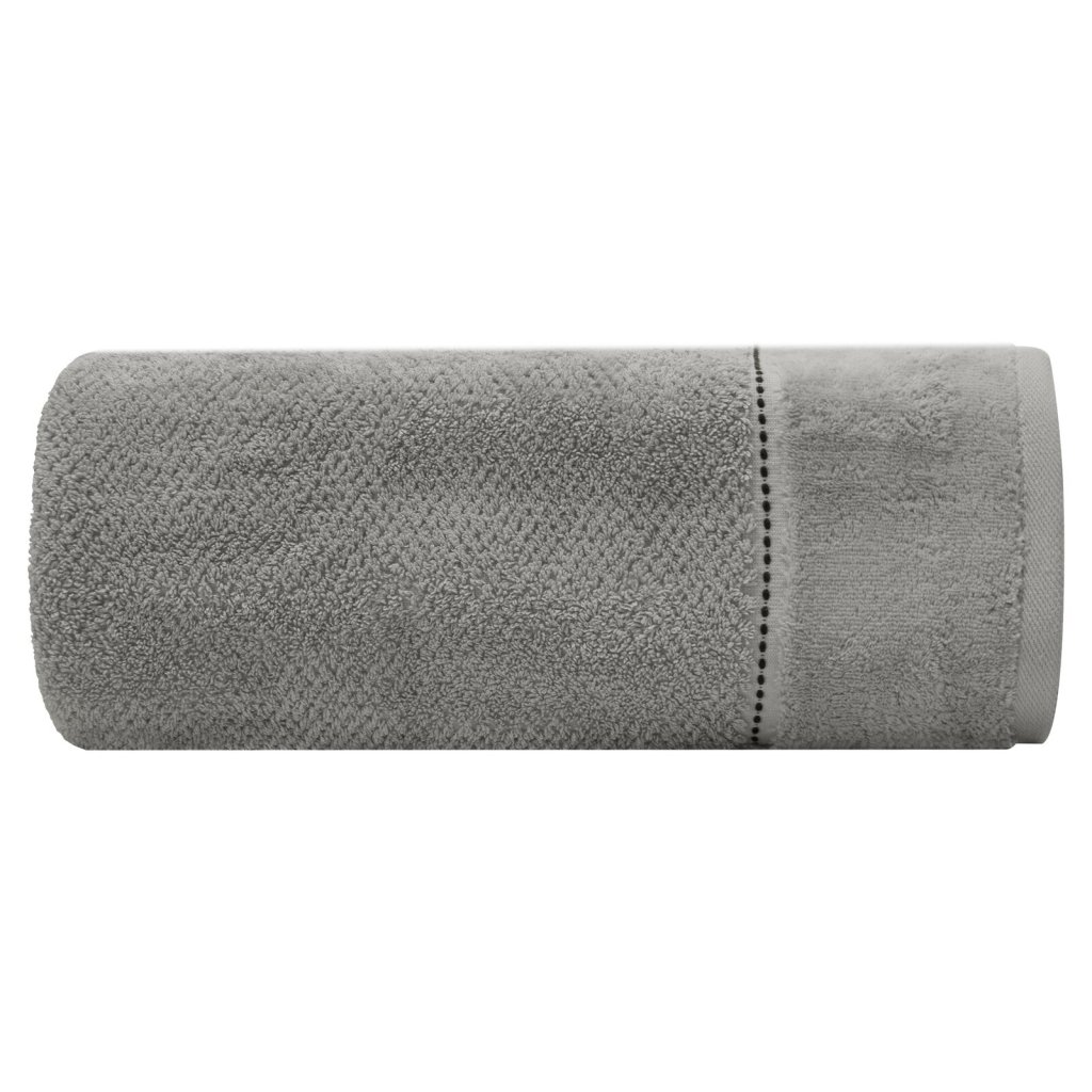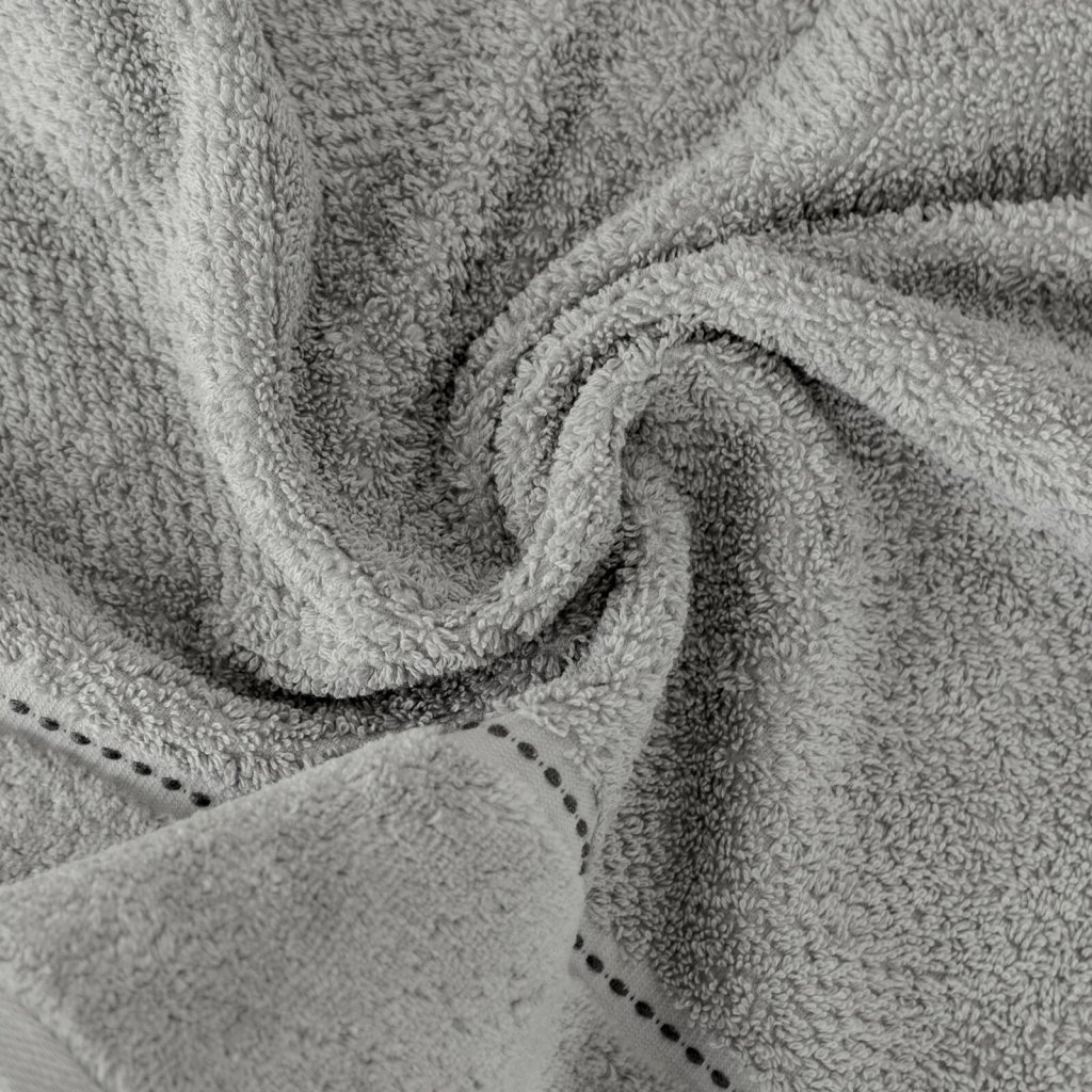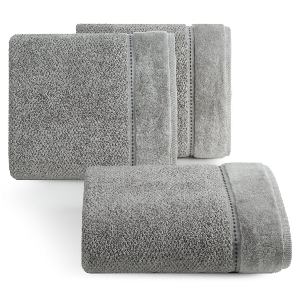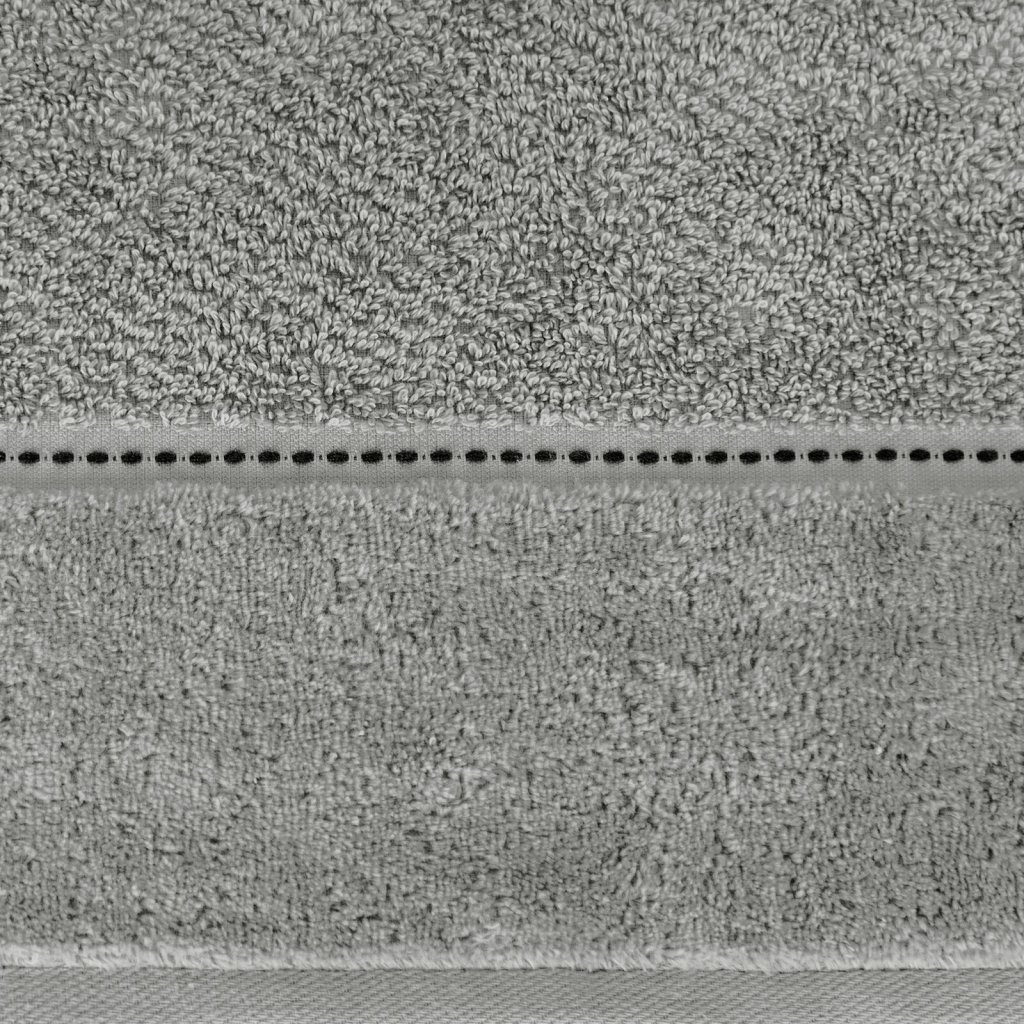 Ručník se sametovým okrajem, šířka: 50 cm, délka: 90 cm, barva: šedá, hmotnost: 500 GSM, složení: 100% bavlna; dekorativní část: 55% bavlna, 45% polyester.Doplňkové parametry