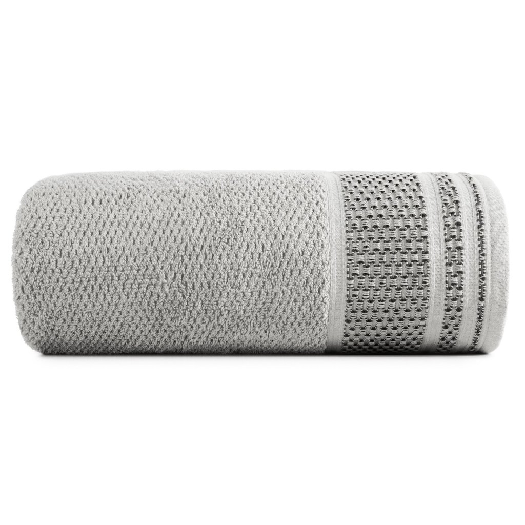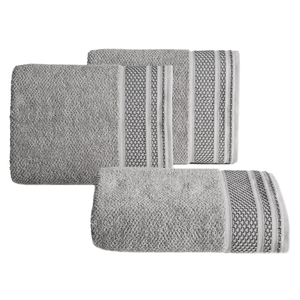 Ručník, šířka: 50 cm, délka: 90 cm, barva: stříbrná, hmotnost: 500 GSM, složení: 100% bavlna; dekorační část: 55% bavlna, 45% polyester.Doplňkové parametry