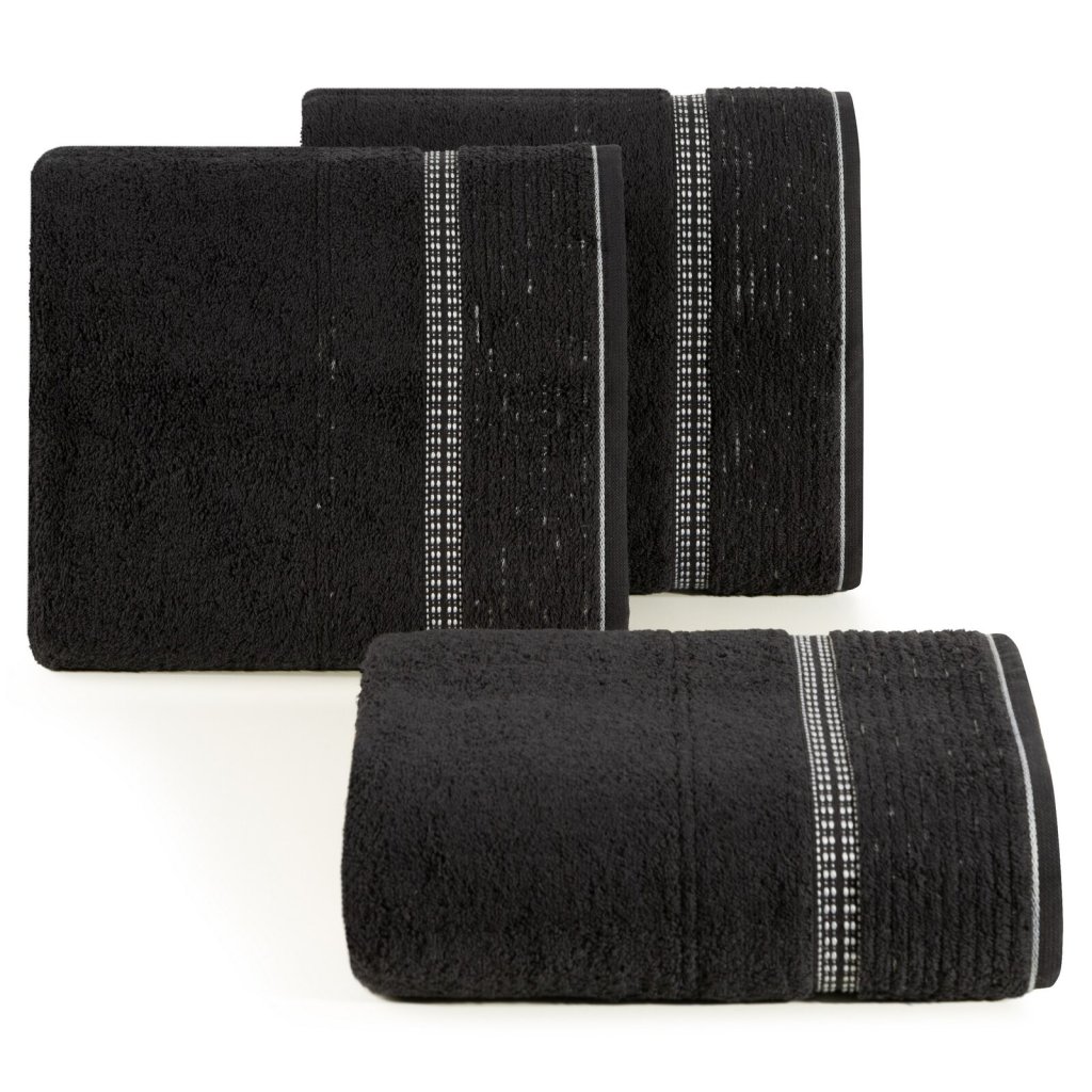Ručník, šířka: 50 cm, délka: 90 cm, barva: černá, hmotnost: 450 GSM, složení: 100% bavlna; dekorativní část: 60% bavlna, 40% polyester.Doplňkové parametry