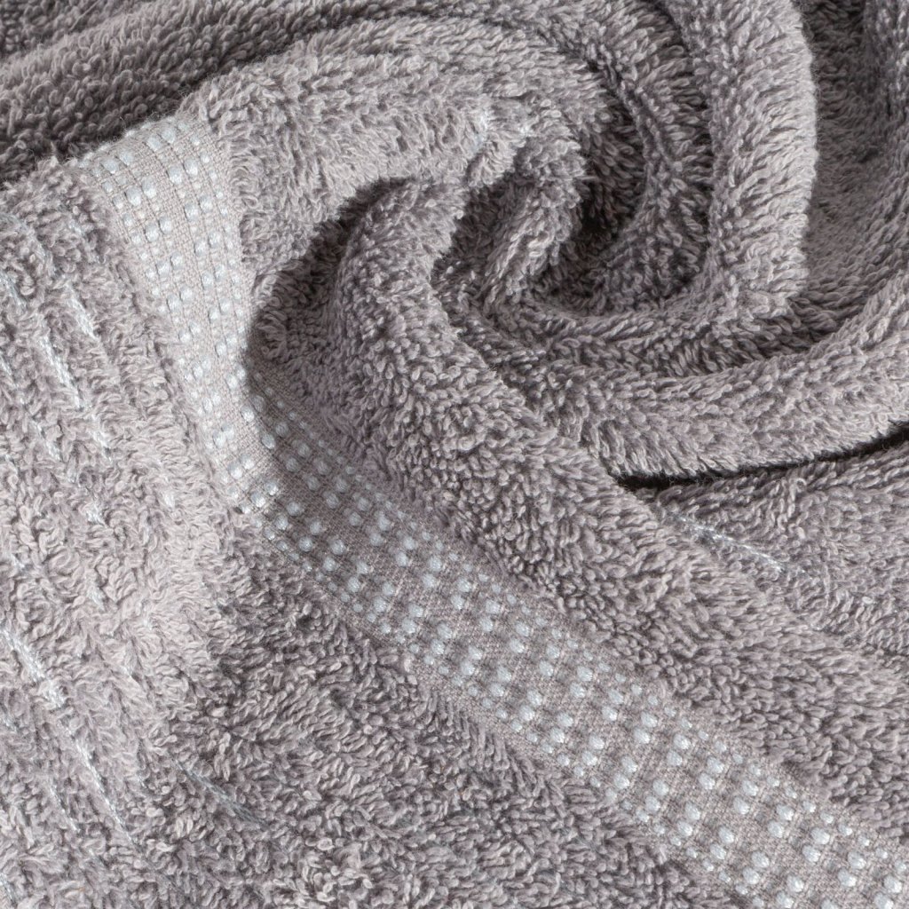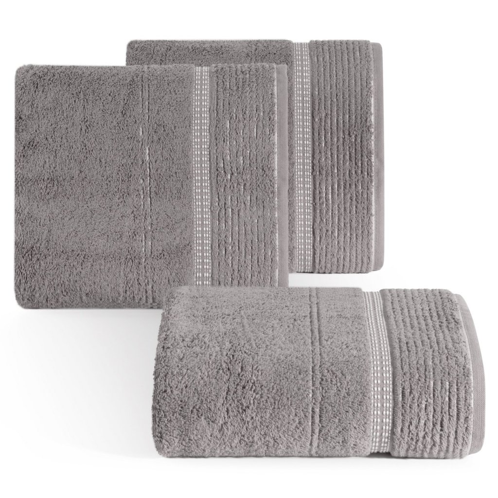 Ručník, šířka: 50 cm, délka: 90 cm, barva: šedá, hmotnost: 450 GSM, složení: 100% bavlna; dekorativní část: 60% bavlna, 40% polyester.Doplňkové parametry