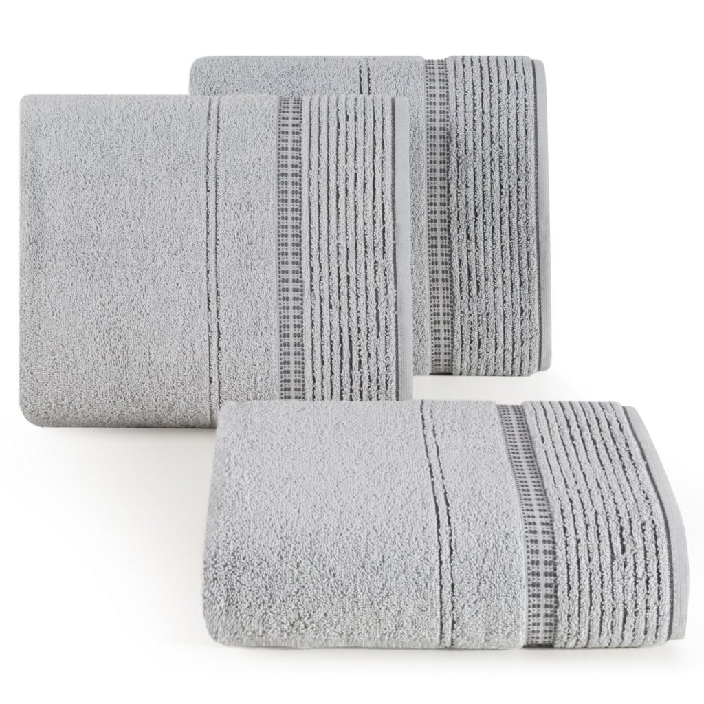 Ručník, šířka: 50 cm, délka: 90 cm, barva: stříbrná, hmotnost: 450 GSM, složení: 100% bavlna; dekorativní část: 60% bavlna, 40% polyester.Doplňkové parametry