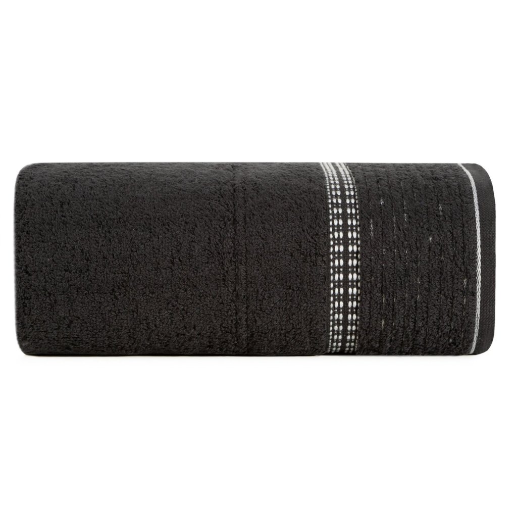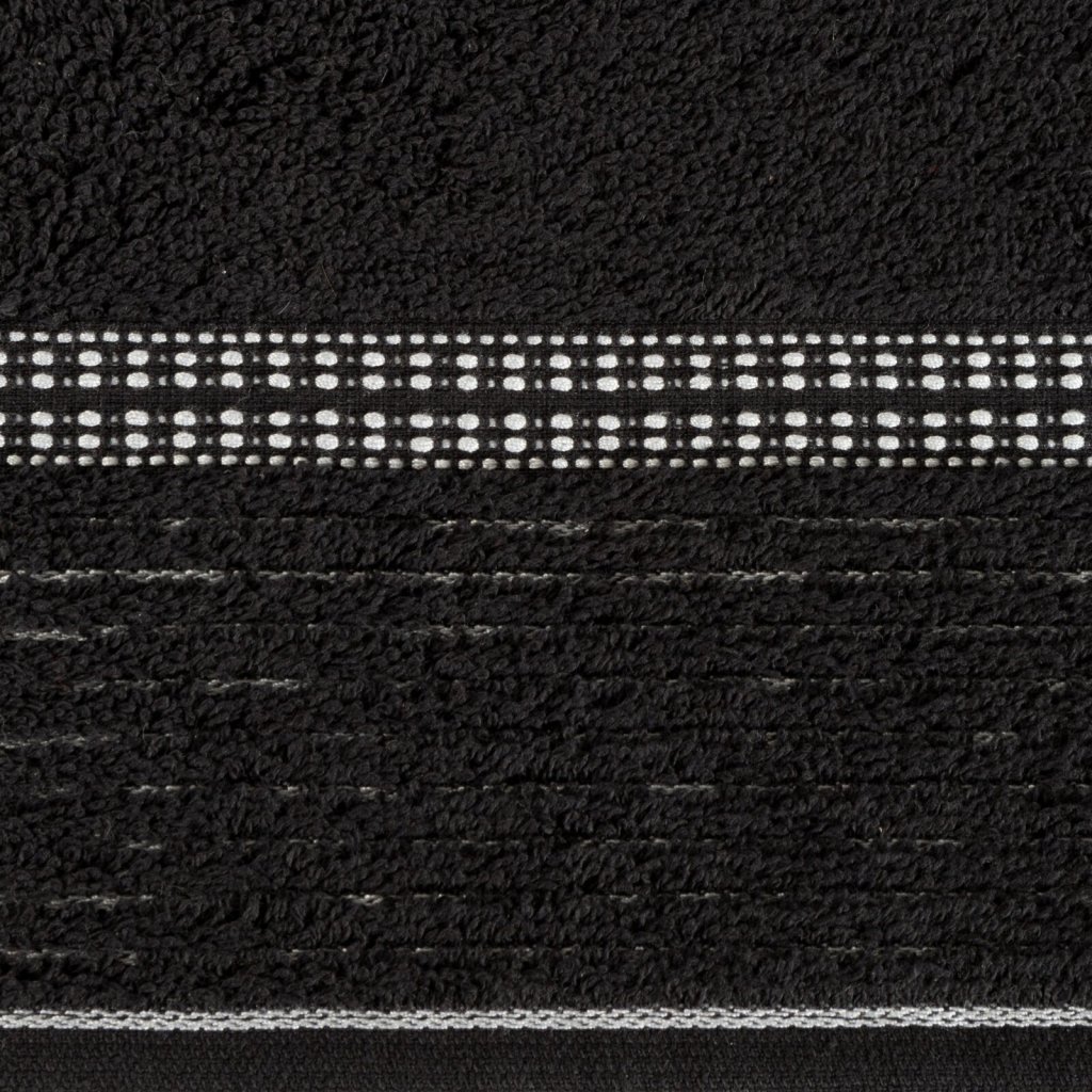 Ručník, šířka: 70 cm, délka: 140 cm, barva: černá, hmotnost: 450 GSM, složení: 100% bavlna; dekorativní část: 60% bavlna, 40% polyester.Doplňkové parametry
