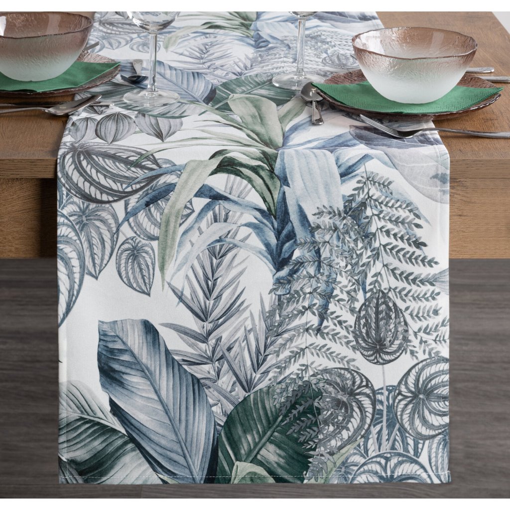 Sametový ubrus DAVOS zdobený potiskem exotických listů je jedinečným dekorativním prvkem, který dodá každému interiéru tropický šarm a eleganci. Jeho měkká, sametová tkanina je poutavá a dodává povrchu bohatý vzhled. Šířka: 40 cm, délka: 140 cm, barva: vícebarevná, gramáž: 200 GSM, složení: 100% polyester.Doplňkové parametry