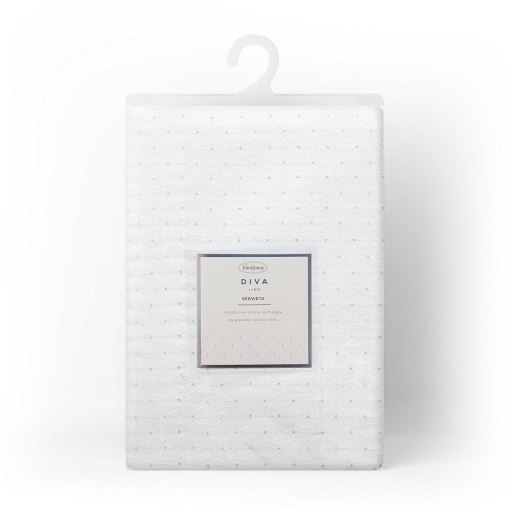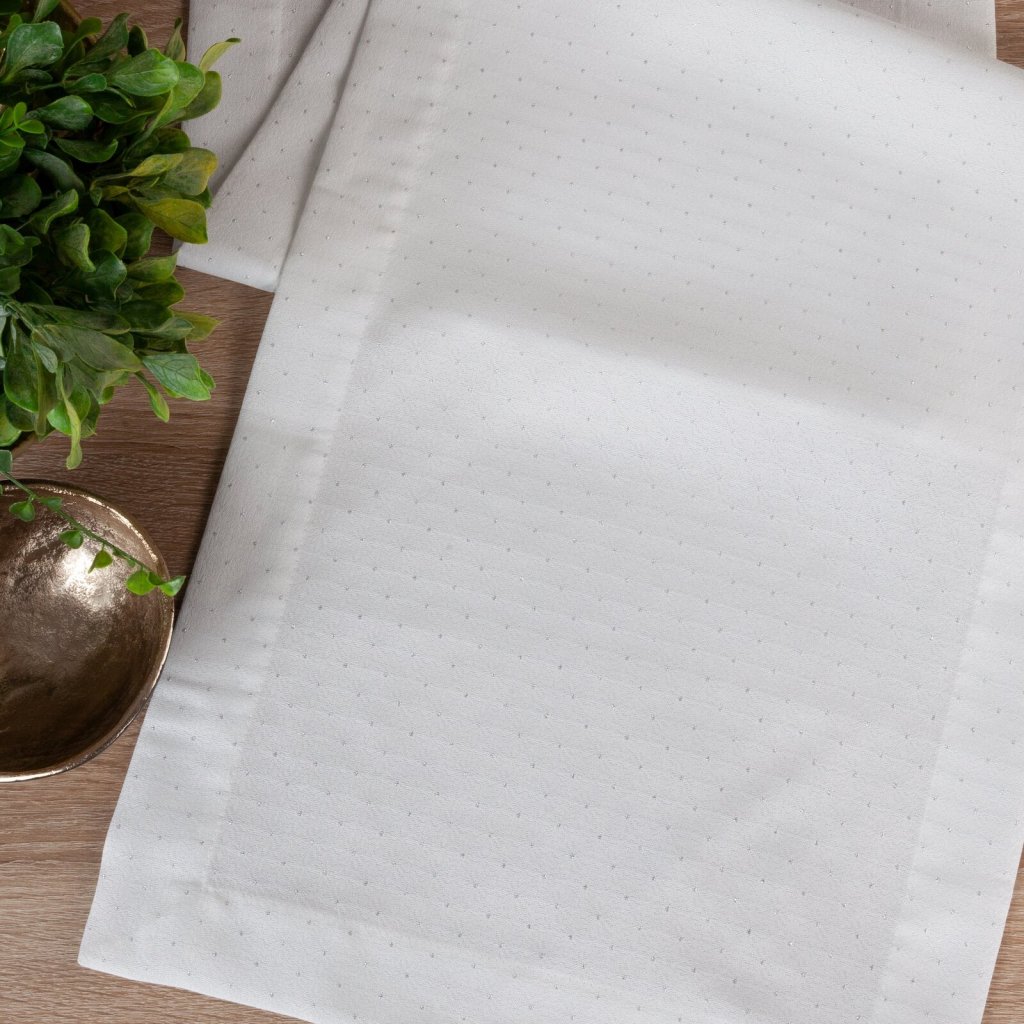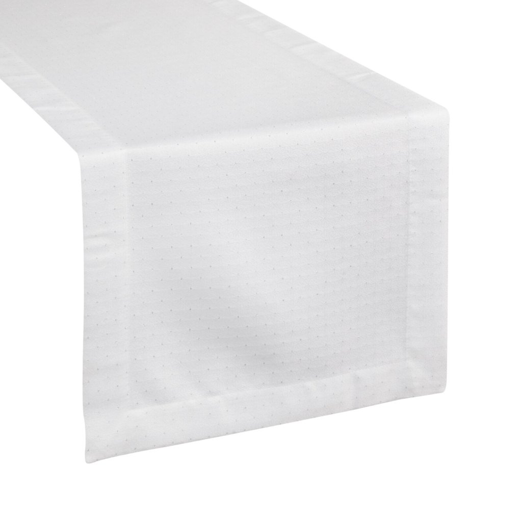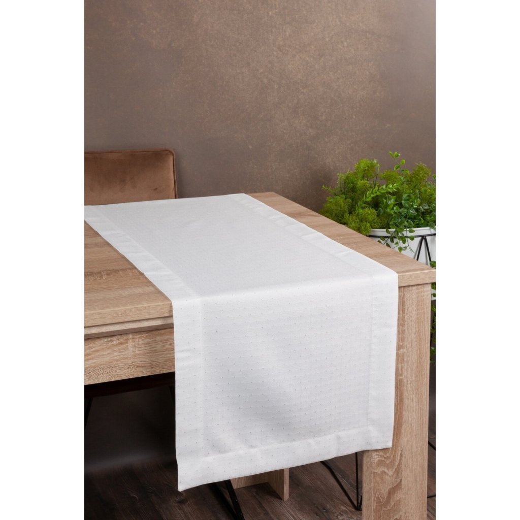 ubrus zdobený stříbrnou nití a otvory šířka: 40 cm, délka: 140 cm, barva: bílá/stříbrná, hmotnost: 160 GSM, složení: 100 % polyester.Doplňkové parametry