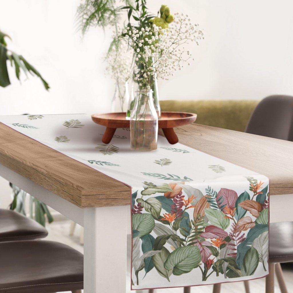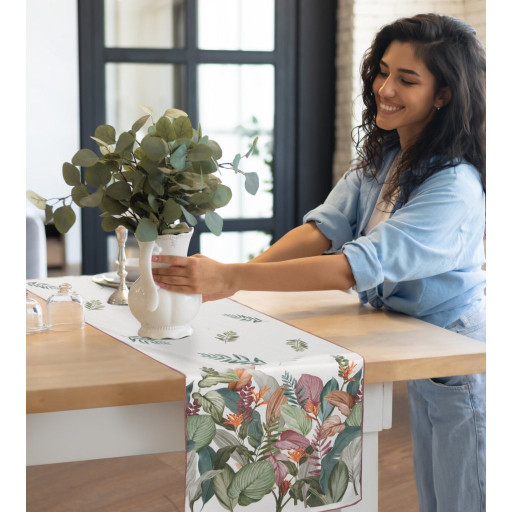Běhoun s botanickým motivem z kolekce INES je ideální pro ty, kteří mají rádi přírodu v barevném provedení. Potisk je poutavý, odolný a nevymývá se ani po mnoha vypráních. Šířka: 40 cm, délka: 180 cm, barva: vícebarevná, složení: 65 % polyester, 25 % bavlna, 10 % len.Doplňkové parametry