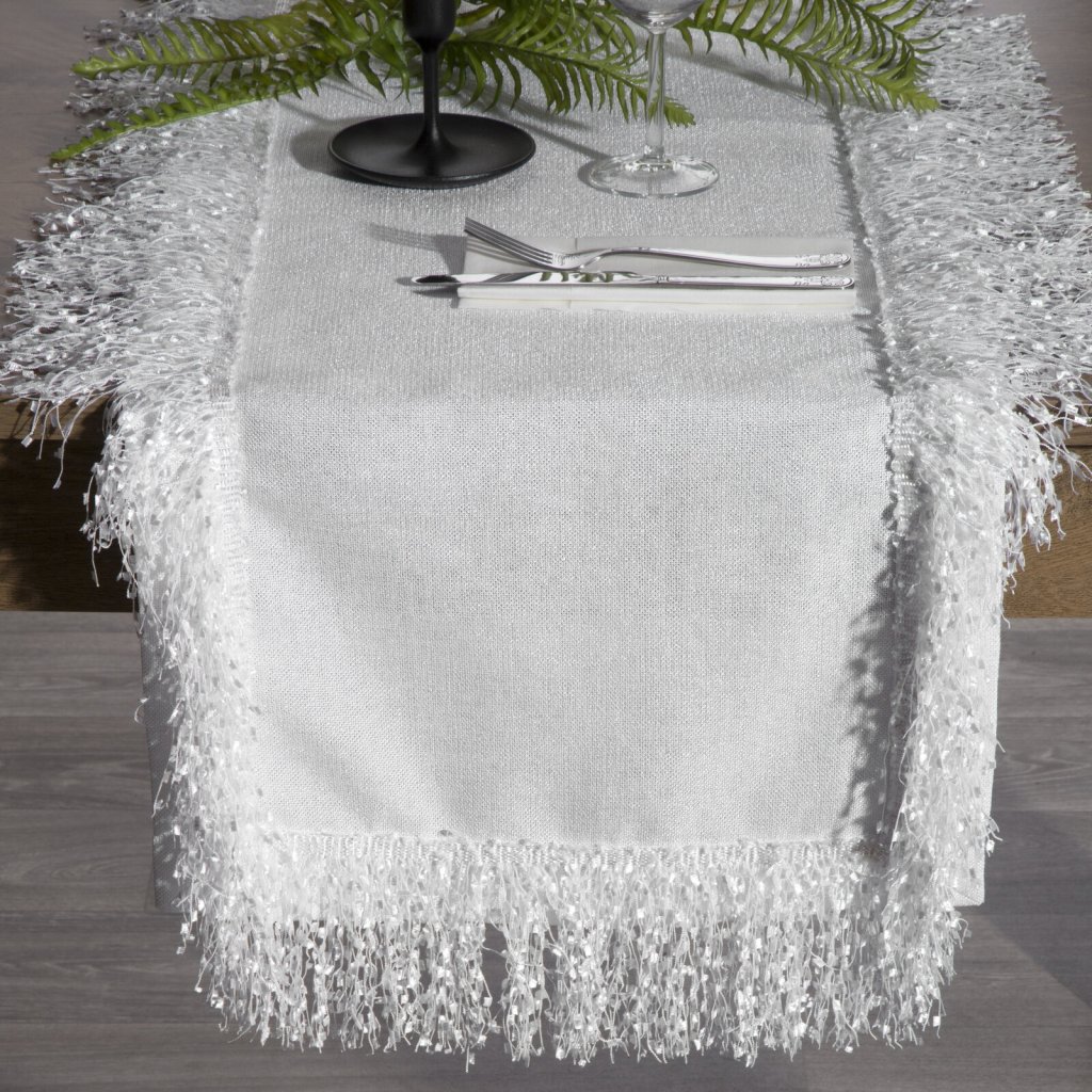 Ubrus TINA je elegantním a stylovým doplňkem každého stolu. Hladký materiál vytváří jemnou a klasickou estetiku. Okraje zdobí nadýchané střapce, které dodávají lehkost a rafinovanost. Díky mírně lesklým třásním získává ubrus nejen estetický vzhled, ale také jemnost a eleganci. Šířka: 40 cm, délka: 140 cm, barva: bílá, hmotnost: 280 GSM, složení: 100% polyester.Doplňkové parametry