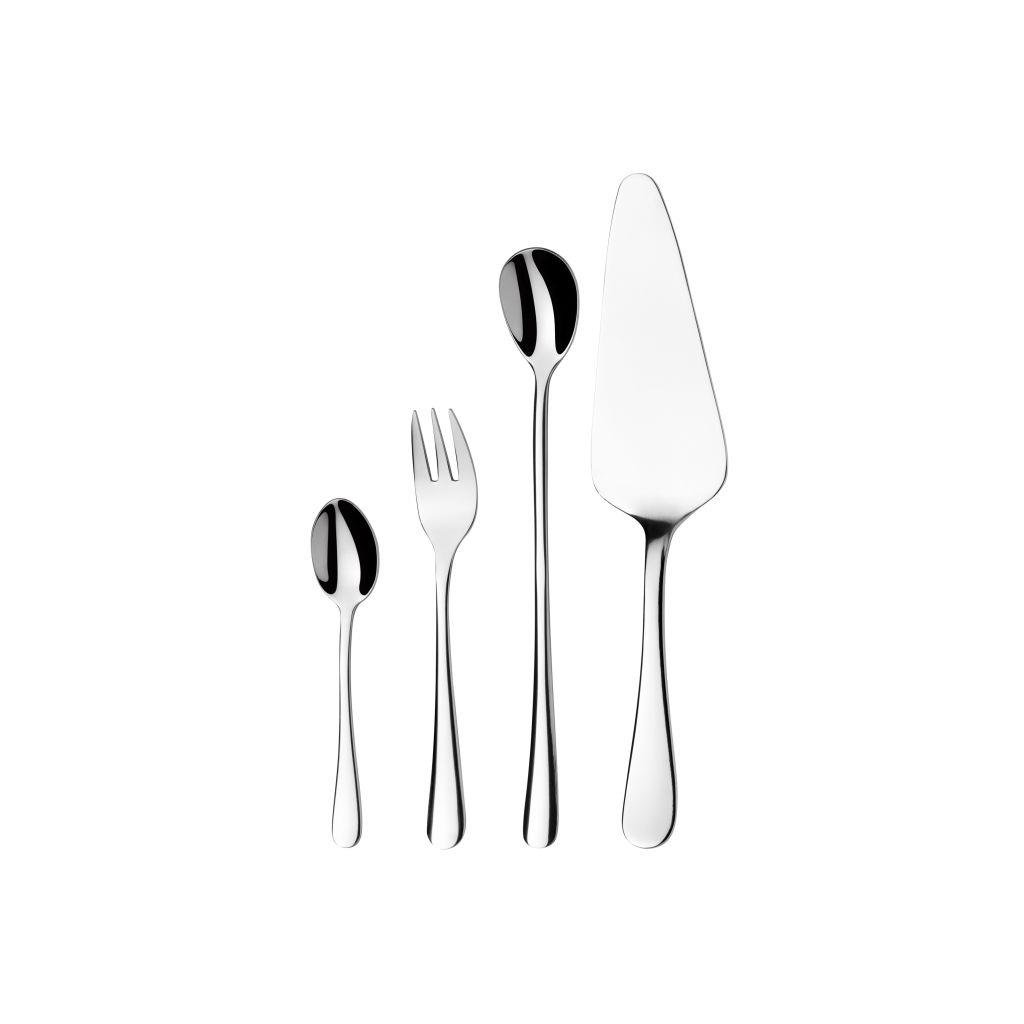 Souprava obsahuje 6 dezertních vidliček o délce 14,5 cm, 6 lžiček mocca o délce 11,5 cm, 6 lžiček na lattě o délce 20 cm a 1 servírovací lopatku na dort o délce 21,5 cm. Díky preciznímu zpracování a elegantnímu designu je tato souprava skvělou volbou i jako reprezentativní dárek .