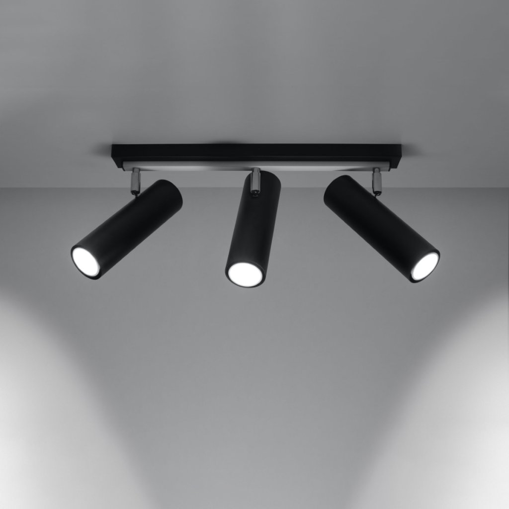 Bodové svítidlo Direzione, 3x černé kovové stínítko, (možnost polohování)
