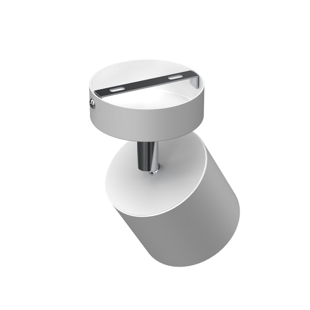 Válcovitý tvar svítidla zajišťuje směrové osvětlení, díky čemuž je vhodný jako hlavní nebo doplňkové svítidlo. Kombinace bílé barvy a chromových prvků se harmonicky začlení do interiérů zařízených v moderním, glamour nebo technicky laděném stylu .