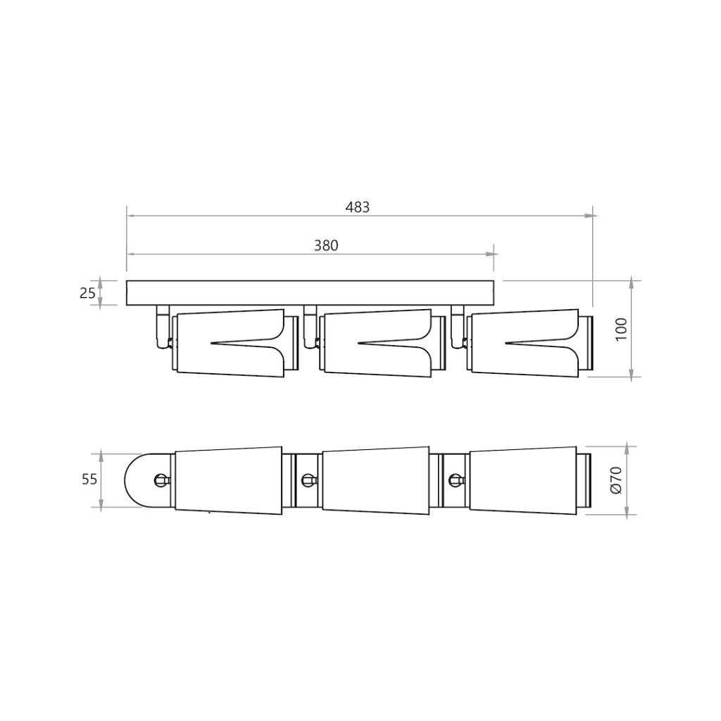 Tři samostatně nastavitelná stínítka umožňují nasměrování světla podle potřeby – ať už se jedná o osvětlení jídelního stolu, komody nebo uměleckého díla na stěně. Pevné kovové provedení zaručuje vysokou odolnost a stabilitu svítidla.
