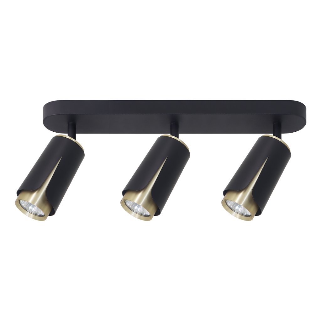 Bodové svítidlo Flower se třemi černými kovovými stínítky a zlatými detaily spojuje moderní vzhled s nádechem elegance a luxusu.