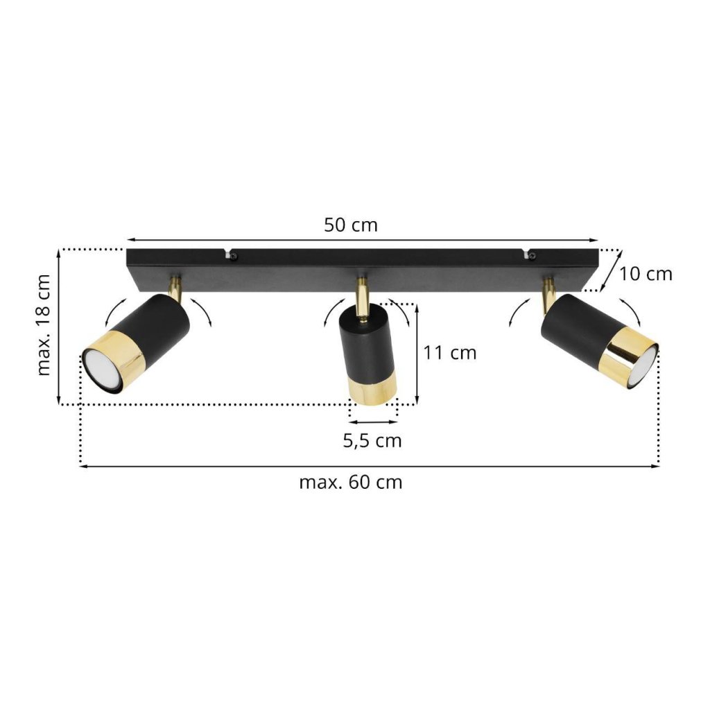 Bodové svítidlo Hugo, 3x černé/zlaté kovové stínítko, (možnost polohování)