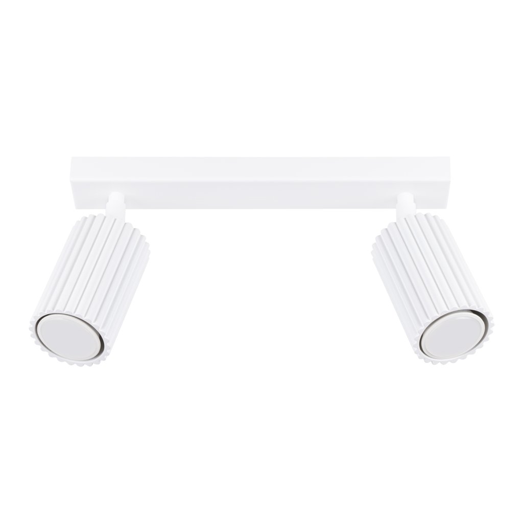 Bodové svítidlo KARBON s dvěma bílými kovovými stínidly je moderní řešení osvětlení, které v sobě spojuje funkčnost, jednoduchost a elegantní design. Jeho čisté linie a žebrovaný povrch vytvářejí stylový doplněk každého interiéru, od obývacího pokoje až po kuchyň nebo chodbu.