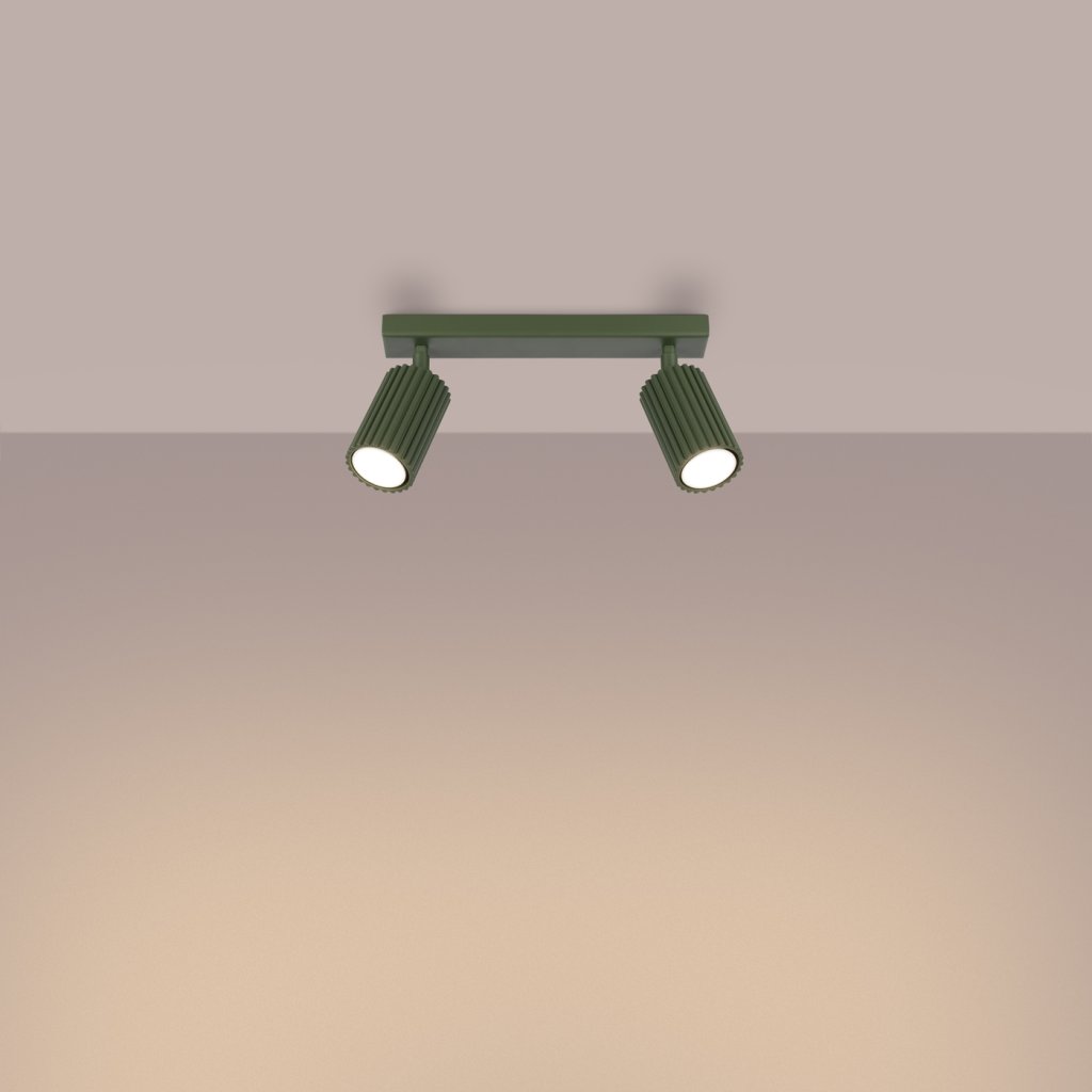 Bodové svítidlo KARBON s dvěma olivově zelenými kovovými stínidly přináší do interiéru moderní design a praktické osvětlení v jednom. Jeho žebrovaný povrch dodává svítidlu osobitý charakter a jemný industriální nádech, který krásně doplní moderní, minimalistické a loftové prostory.