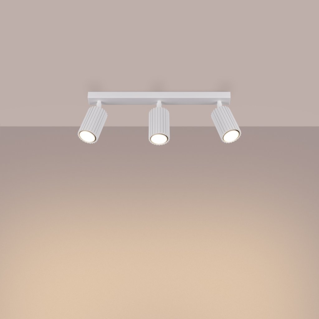 Bodové svítidlo KARBON s třemi bílými kovovými stínidly je kombinací čistého designu, funkčnosti a moderního stylu. Jeho minimalistické linie a matná povrchová úprava působí elegantně a harmonicky, díky čemuž je svítidlo vhodné do každého interiéru, od obývacího pokoje a kuchyně až po pracovnu nebo chodbu.