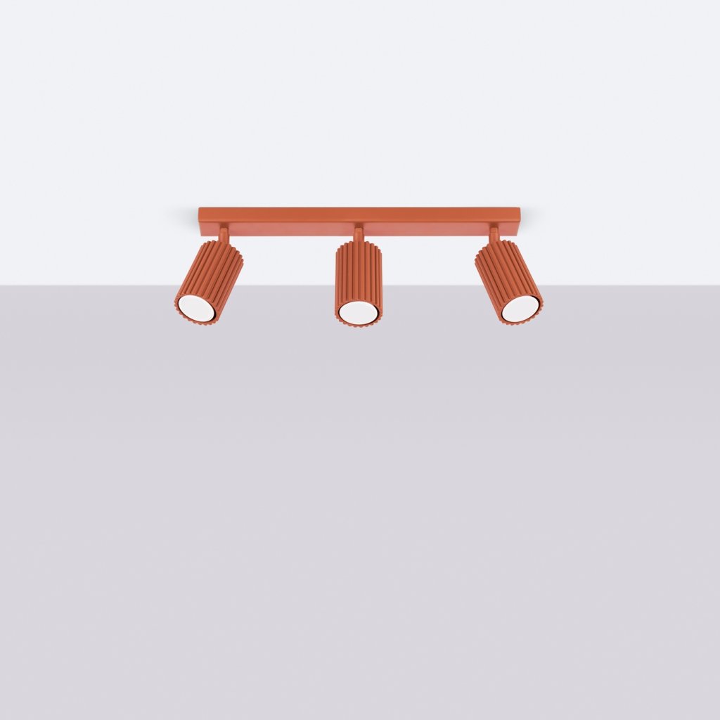 Konstrukce z kovu zajišťuje dlouhou životnost a odolnost proti poškození, zatímco žebrovaný povrch usnadňuje čištění a dodává svítidlu zajímavou strukturu. Okrově červené odstíny vnášejí do prostoru teplo, energii a moderní charakter, který vynikne v kombinaci s neutrálními barvami interiéru.