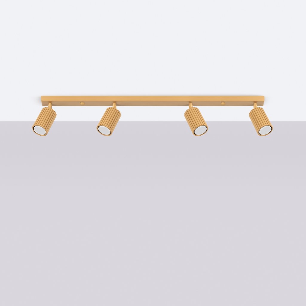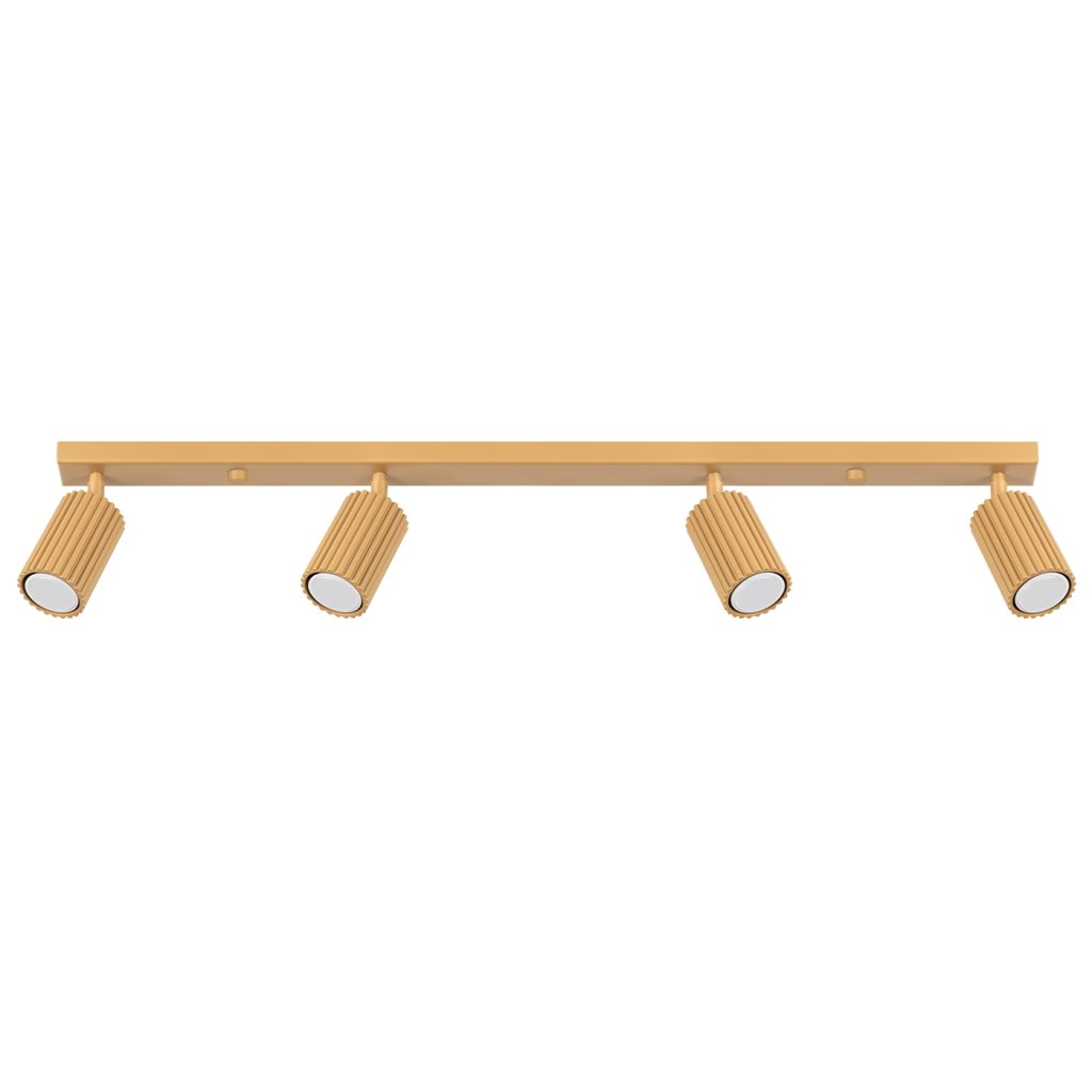 Bodové svítidlo KARBON se čtyřmi zlatými kovovými stínidly a polohovatelností je ideálním řešením pro ty, kteří hledají funkční a zároveň sofistikované osvětlení. Žebrovaná struktura stínidel působí moderně a elegantně, takže svítidlo je jak estetickým doplňkem, tak praktickým zdrojem světla.